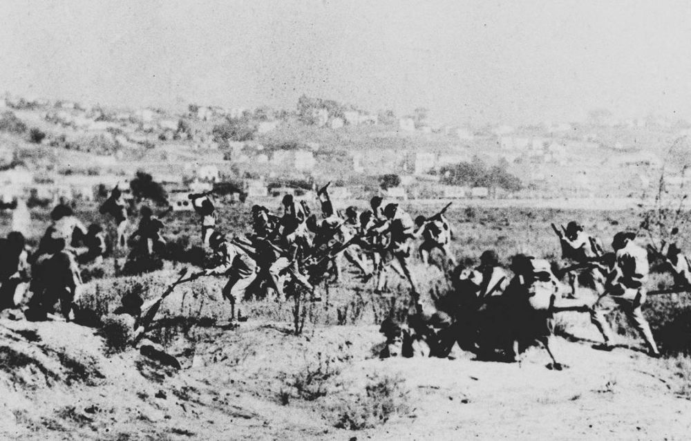 1937年9月25日,八路军第115师取得了平型关大捷。图为八路军115师战士在平型关公路两侧伏击日军(资料照片)。