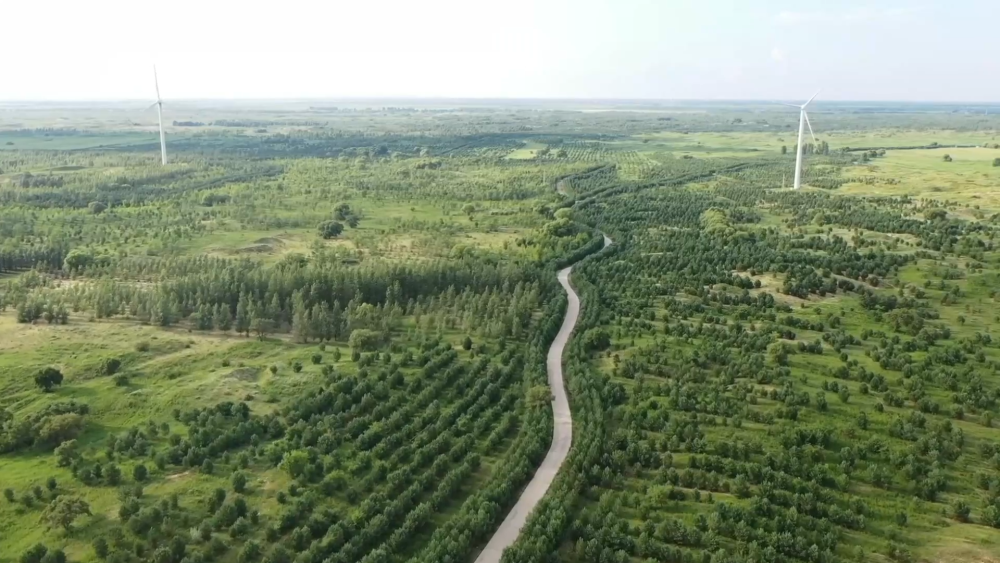 记者在通辽市科左后旗努古斯台项目看到了广袤的森林,真切感受到治沙的实效。当地治沙人首创“深栽浅埋”种植法,让苗木成活率从50%跃升至90%以上。