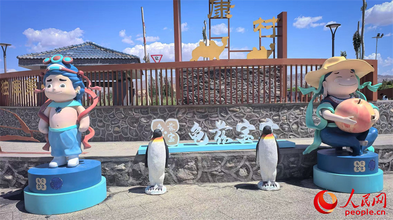 康村文化长廊旁的龟兹宝宝造型。人民网记者 陈新辉摄