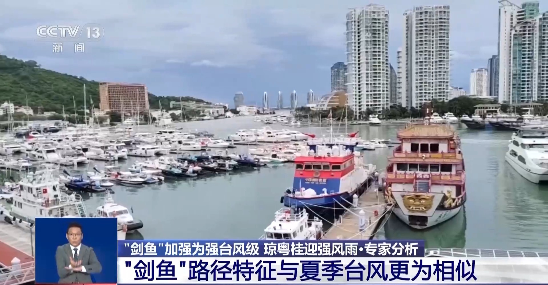记者24日下午从海南省气象台了解到,“剑鱼”已于24日14时加强为强台风级,预计其将于24日傍晚到夜间从三亚到乐东一带近海擦过,24日下午至25日海南省有强风雨天气。