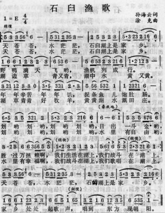1943年,溧水地区作为苏南敌后抗日根据地的中心区,处于极其困难的斗争环境中。当时,日军正策划对苏南抗日根据地实施大规模“清乡”行动。与此同时,国民党顽固派军队也蠢蠢欲动,企图消灭苏南新四军主力部队。正是在这样紧张的氛围中,《石臼渔歌》这首充满生活气息的歌曲诞生了。