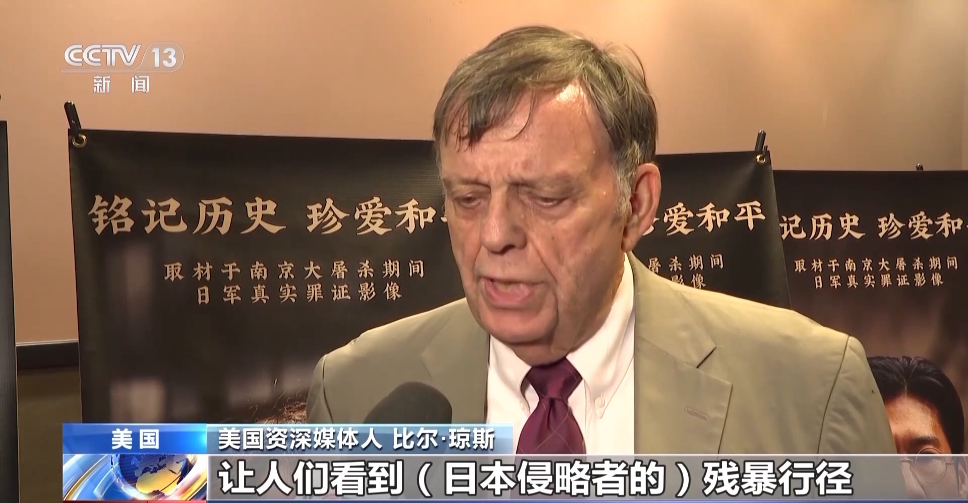 美国资深媒体人 比尔·琼斯:我认为通过(《南京照相馆》)这部电影,让人们看到(日本侵略者的)残暴行径。这部电影唤醒人们的良知,让我们思考应该向哪个方向前进。