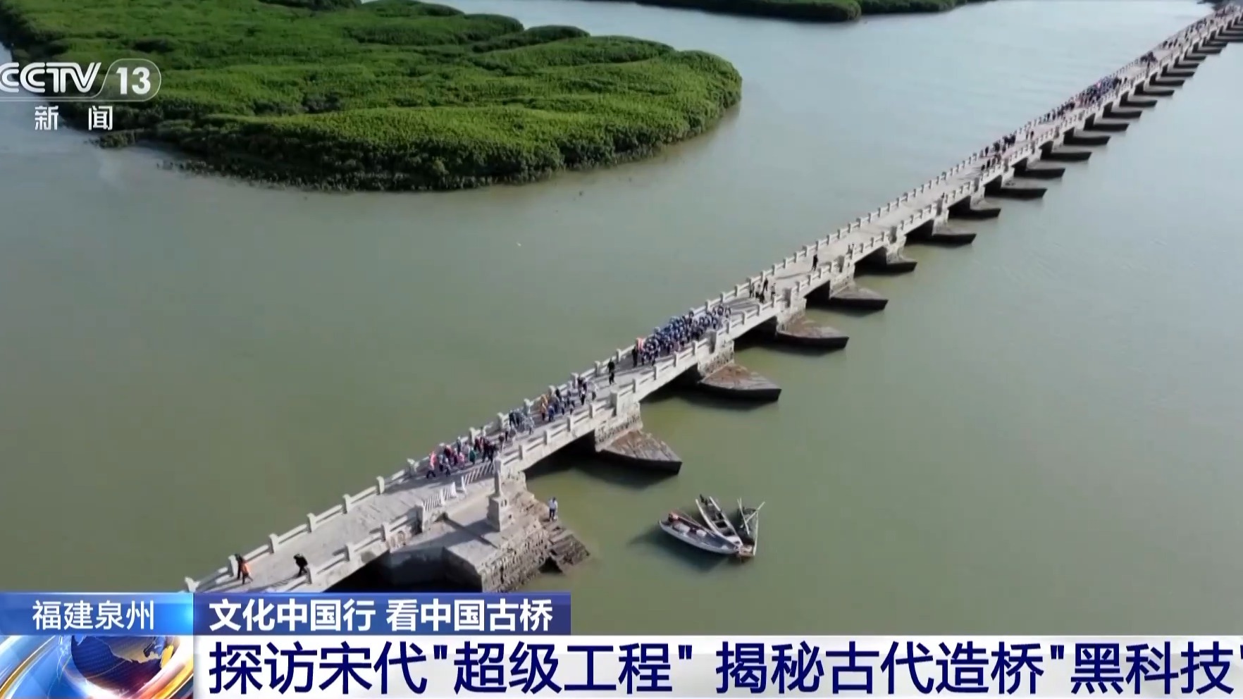 总台记者 赵晟萱:洛阳桥有这样一方摩崖石刻,上面写着“万古安澜”。其实在洛阳桥建成之前,这里是一个渡口,叫“万安渡”,这也是为什么,洛阳桥又被称为“万安桥”。古时的洛阳江,“水阔五里,波涛滚滚”。在洛阳桥建成之前,往来交通只能依靠摆渡过江。但这里处于江水与海潮的交汇处,水位陡涨陡落,尤其到了雨季,洪流滔滔,极不安全。中国海外交通史研究会理事 李国宏:从北宋庆历年间(公元1041—1048年)开始,泉州人就想尽各种办法要在洛阳江上建一座跨海石桥,可惜都失败了。一直到北宋嘉祐四年(公元1059年),在泉州太守蔡襄的主持下,终于把洛阳桥给建成了。900多年来,洛阳桥上人来人往,洛阳江上潮起潮落。你无法想象,近千年前,工匠们要如何在绵软的淤泥里,克服江海急流的冲击,沉下坚实的桥基?中国海外交通史研究会理事 李国宏:想在洛阳江上建一座跨海大石桥,潮汐是最重要的因素,所以洛阳桥建造当中应用到很多技术手段都跟潮汐有关。首先就是筏型基础的运用。所谓的“筏型基础”,就是当潮水退至最低水位时,让大量渔船沿着桥梁的预设走向,向水底抛掷大量石块,形成一条横跨江堤的矮石堤。这道石堤利用石块的堆叠与沉降,解决了江底松软的问题,形成了桥基。随后,工匠们再利用退潮时辰,用花岗条石垒砌,在桥基上完成桥墩建造。而且,工匠们将桥墩面向水流的方向,砌造成船尖形状,座座桥墩如石船排列,大大减少了水流的冲击。中国海外交通史研究会理事 李国宏:建造洛阳桥的时候,首创了筏型基础这项 “黑科技”,长期被模仿,却很难被超越。从文献的记载来看,欧洲一直到19世纪才掌握了类似中国宋代就应用的筏型基础这种技术。桥墩建成后,又一个难题随之而来。洛阳桥的桥面需要三百多条巨大石板,最大的一条长约11米,重达十多吨,在没有重型运载设备和钢铁吊臂的宋代,怎样才能丝毫不差地把这些石板架上石墩?中国海外交通史研究会理事 李国宏:这就是洛阳桥在建造的时候运用的浮运架梁法,涨潮的时候先把巨大的石板安放在船上,慢慢驶向两个桥墩之中,落潮了,巨大的石板就稳定地安放在桥墩上,船也趁着落潮安全的驶离桥墩。完成结构搭建,如何能让大桥在江海中屹立不倒?这就不得不提到另外一项创新技术,养蛎固基。中国海外交通史研究会理事 李国宏:牡蛎的吸附力很强,而且繁殖速度很快,所以当年建造洛阳桥的时候,就在桥墩上人工养殖牡蛎,利用牡蛎的这种特性来保护桥墩。这也是世界上第一个将生物学运用到桥梁建筑的首创。洛阳桥建成后,泉州及闽南地区通往福州的交通主干道,从原先出城北绕行山路,改为出城东经沿海地貌平坦的惠安、仙游直达福州,继而北上各地,泉州与各地的人流物流往来蒸蒸日上。不仅如此,洛阳桥也开启了泉州近3个世纪的大规模造桥运动。中国海外交通史研究会理事 李国宏:宋元时期,泉州建造了大约170多座的石桥梁,把港口码头和城区连接成一条沿海大通道,有力地推动了泉州海外贸易发展。桥头有“护卫”栏杆蹲“萌宠”千百年来,洛阳江潮起潮落,洛阳桥雄姿犹在。洛阳桥的主要原材料是花岗岩石,桥上的石雕工艺也备受赞誉,其中最引人注目的是桥头的四尊护桥将军雕塑和特别造型的石柱,它们也被当地人称为千年守桥“人”。 “我是守护在洛阳桥南端的石将军,我在这里,已经守了九百多年了。对面那位,是我的徒弟,别看他成天笑呵呵的,但守桥的心和我一样坚定,看着潮涨潮落,我们要把洛阳桥,一代代守下去。”中国海外交通史研究会理事 李国宏:洛阳桥的石将军共有四尊,分列安置在桥的南北两端,两两相对而立。无论是它的纹饰还是人物的神情,都栩栩如生,为研究宋代石雕技艺提供了非常珍贵的实物资料。“嘿!护桥的可不只有他石将军,还有我!大家都说我是狮子,其实我的名字叫狻猊,就是传说中龙生九子里,龙的第五个孩子,为什么派我来守桥呢?因为据说我的爸妈是龙和狮子,我继承了它们的威猛刚勇,有我坐镇古桥,安全感满满!”中国海外交通史研究会理事 李国宏:洛阳桥上的栏杆共有525根,其中雕刻有狻猊的是104根。不仅仅具有艺术装饰的作用,也增加了栏杆的配重,让栏杆和桥板结合更加稳固。狻猊的外形像狮子,把它们安放在洛阳桥上,也寄托着百姓希望这座桥长久安稳的一种美好愿景。匠心守护与科学监测护航古桥传承焕新古代工匠的智慧与技艺,让洛阳桥成为我国古代大型跨海石桥的工程杰作。它不仅是重要的交通动脉,更是宋元时期海上丝绸之路的重要见证。而也正是有了现代工匠和科技力量的持续守护,才让这座跨海飞虹,历经近千年风雨依旧历久弥新。 总台记者 赵晟萱:洛阳桥的桥面,是由300多条坚固的条石铺就而成,大家仔细看,可以发现这些石板的颜色有深有浅,表面风化的程度也各不相同。这是因为近千年来,洛阳桥经历了大大小小26次修缮,这些石板有些来自宋代,有些来自历朝历代修缮时候留下,它们都见证了古桥的沧桑变化。刘大山是国家级非遗闽南传统民居营造技艺的代表性传承人,他从小就生活在洛阳桥边,前后主持修缮了80多处国家重点文物保护单位,其中,就包含1993年洛阳桥最近的一次修缮工程。国家级非遗闽南传统民居营造技艺的代表性传承人 刘大山:我们在修桥的时候,首先就要读懂桥的各方面信息。洛阳桥整座桥是干砌的,没