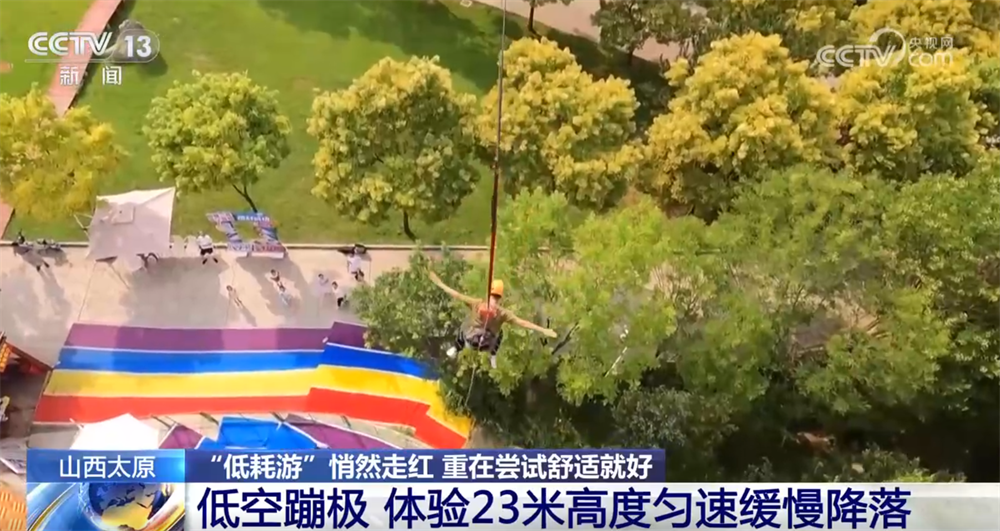 “无痛爬山”带来舒适体验,低速版蹦极也吸引着年轻人尽情尝试。山西太原的汾河二库景区,今年“五一”开始推出的低空蹦极体验项目,把跳跃高度控制在23米,让游客可以以匀速缓慢地降落到地面。