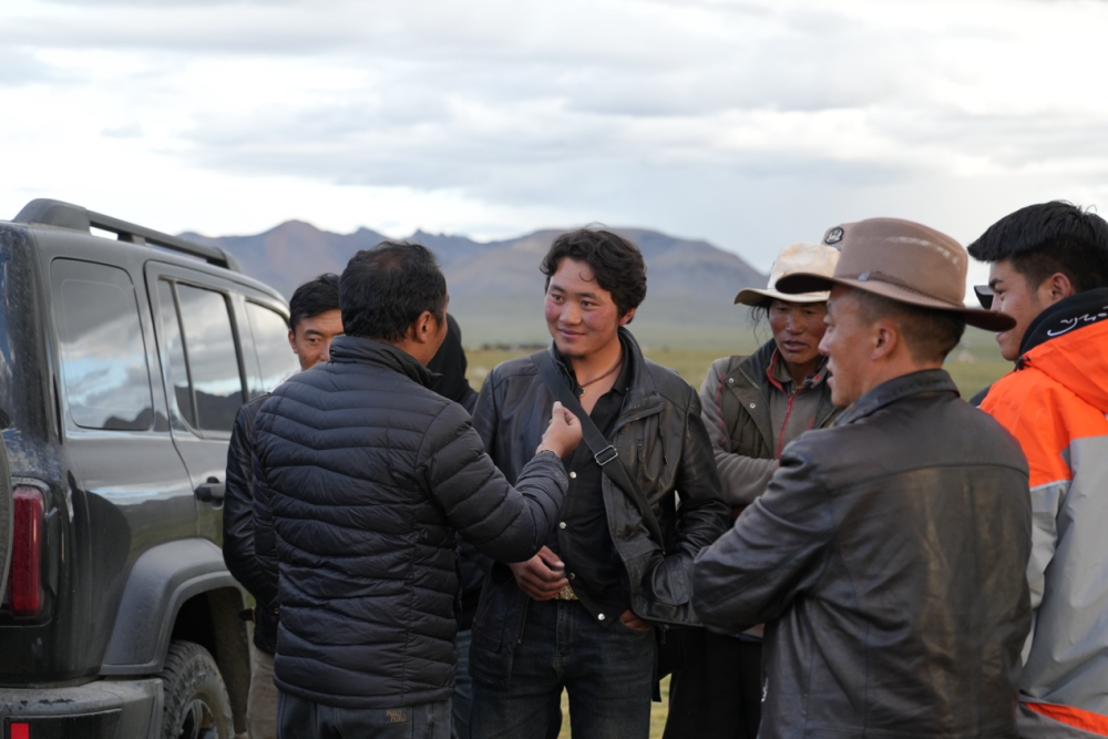 图为巴登求扎团队工作人员与牧民交谈。 何欣然摄