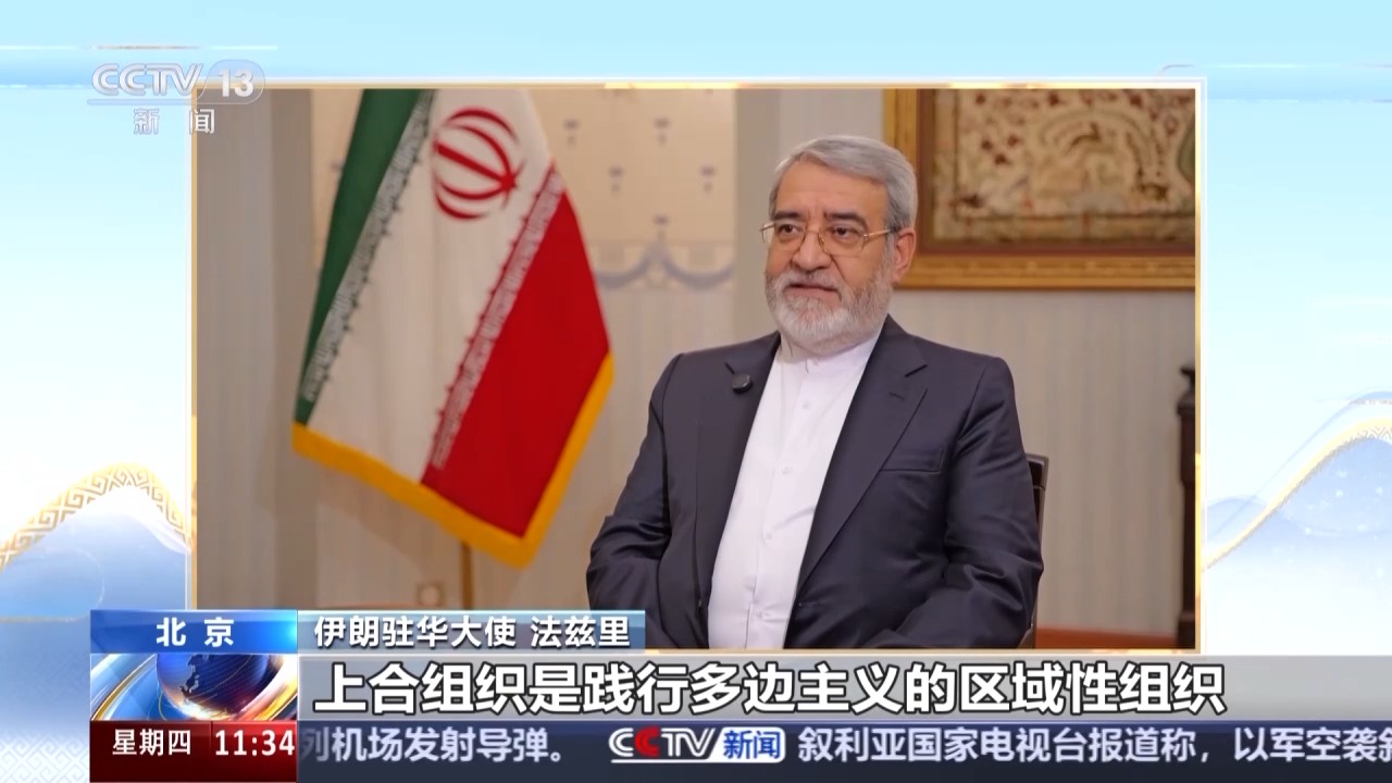 伊朗驻华大使 法兹里:伊朗自2023年正式成为上合组织成员国以来,在上合组织框架内同相关国家在跨境运输、经济及安全等方面开展合作,取得显著成果。伊朗坚信集体合作和相互尊重的价值,并在此理念引领下,积极参与了上合组织所有相关委员会及分委会会议,伊方最高级别官员及各部长和相关行政机构负责人等均参与其中,并提出务实倡议,很多倡议已经被上合组织通过。