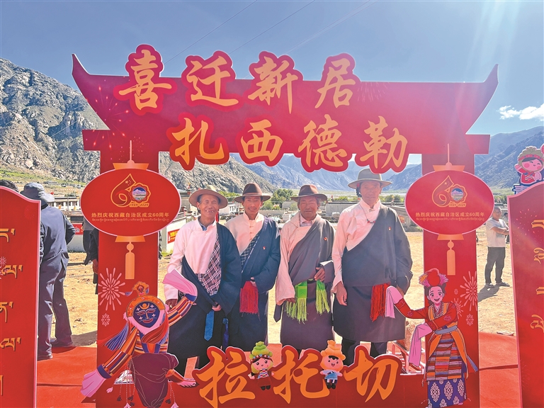 昂仁县达局乡珠吾村搬迁群众合影留念。昂仁县融媒体供图