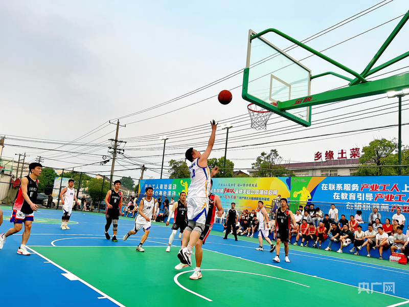 东联镇产业工人篮球主题公园正举行精彩的篮球赛(央广网发 汪槿曦 摄)
