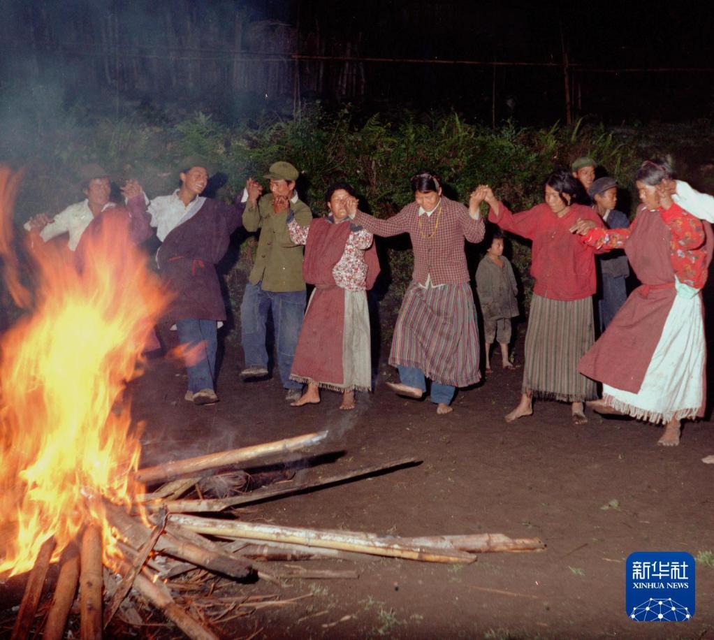 1981年5月23日,西藏自治区各族人民热烈庆祝西藏和平解放30周年,在拉萨隆重举行文艺演出。这是业余藏戏队在劳动人民文化宫广场演出古老藏戏《卓娃桑姆》的场面。