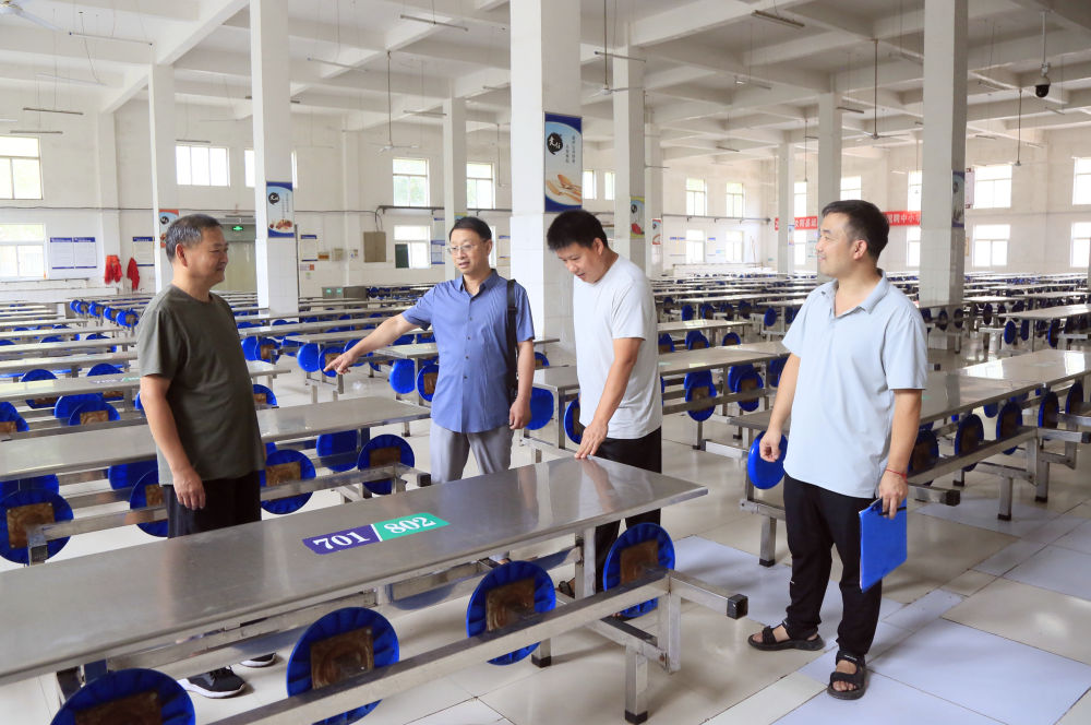 8月25日,河南省洛阳市汝阳县直属初级中学教职工对学校餐厅进行安全检查。新华社发(康红军摄)