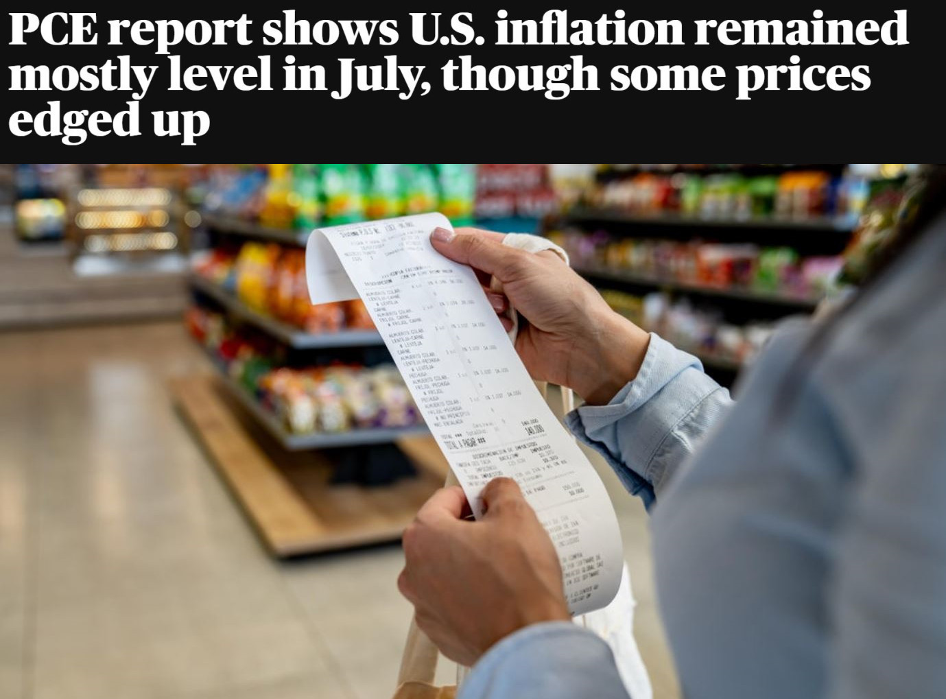 此外,美国商务部29日发布了美联储最关注的通胀指标——个人消费支出(PCE)价格指数。数据显示,美国7月PCE价格指数同比上涨2.6%,7月核心PCE价格指数同比上涨2.9%,较6月份上升0.1个百分点,基本符合市场此前预期。