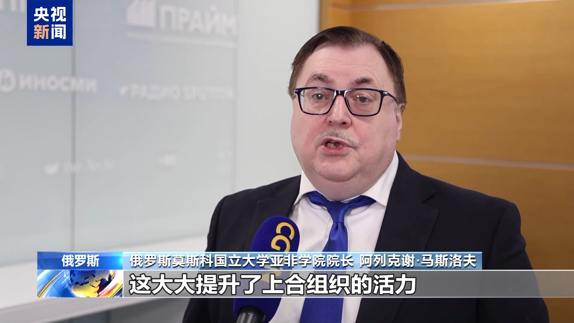 俄罗斯莫斯科国立大学亚非学院院长 阿列克谢·马斯洛夫:中国在上合组织框架下,提出了一系列新的议题,这大大提升了上合组织的活力。中国积极推动在上合组织框架下的商品、服务及新技术跨境流动便利化。与此同时,中国以坦诚的态度探讨关乎全球稳定的重大议题。上合组织正逐步成长为跨区域国际组织,以灵活高效的协商机制共商议题。