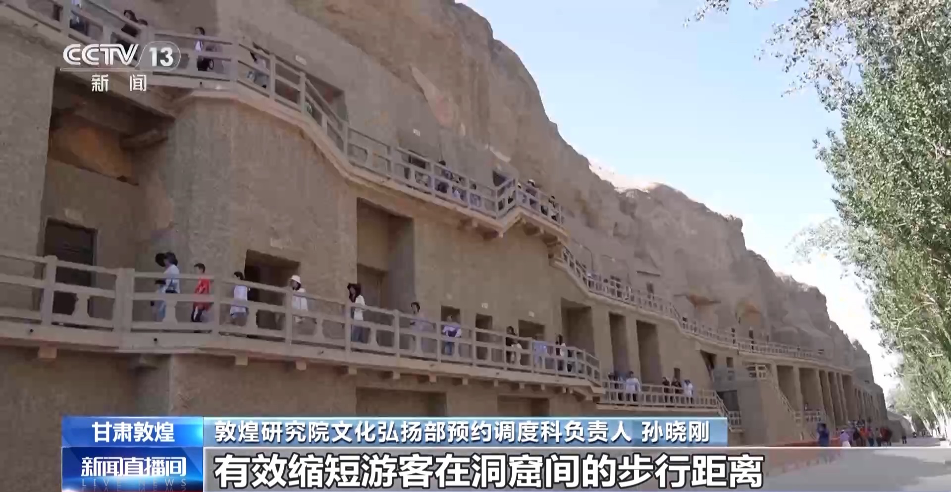 敦煌研究院文化弘扬部预约调度科负责人 孙晓刚:有效缩短游客在洞窟间的步行距离,避免参观路线交叉导致的拥堵现象。