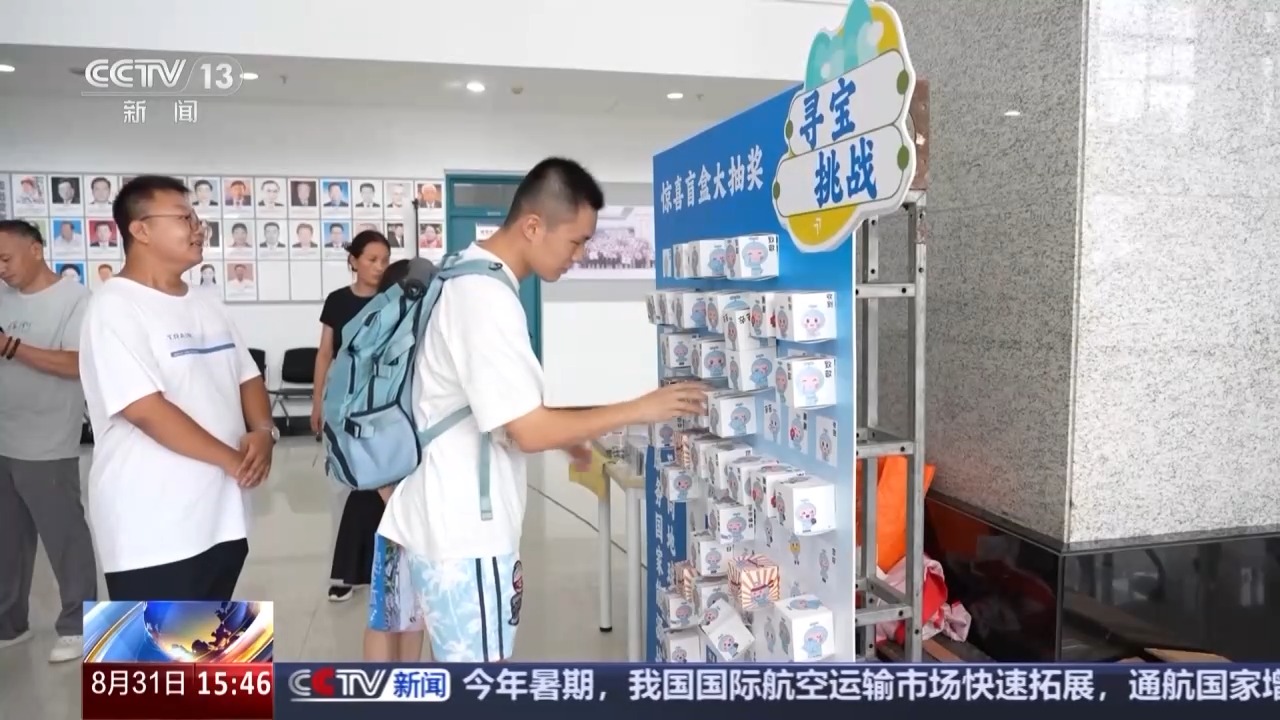 总台记者 王江帆:在这片水墨丹青式布景的区域,就将迎新和国家级重大文化工程——“中国历代绘画大系”的元素结合,让新生在步入校园之初,就体验到传统文化的魅力。在这里不仅有拓印体验,还能够通过快问快答环节,将“大系”里的名画变成明信片带回家。同时,还有古画探秘区,手机碰一碰就能了解名画背后的故事,真是一堂穿越千年的“开学第一课”!
