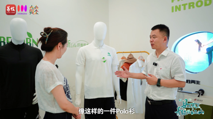 “8个塑料瓶可生产1件Polo衫,30多个瓶子能做1件冲锋衣。”在盛虹新材料产业园展厅,项目负责人孔文龙拿起一件再生纤维POLO衫向记者介绍道。