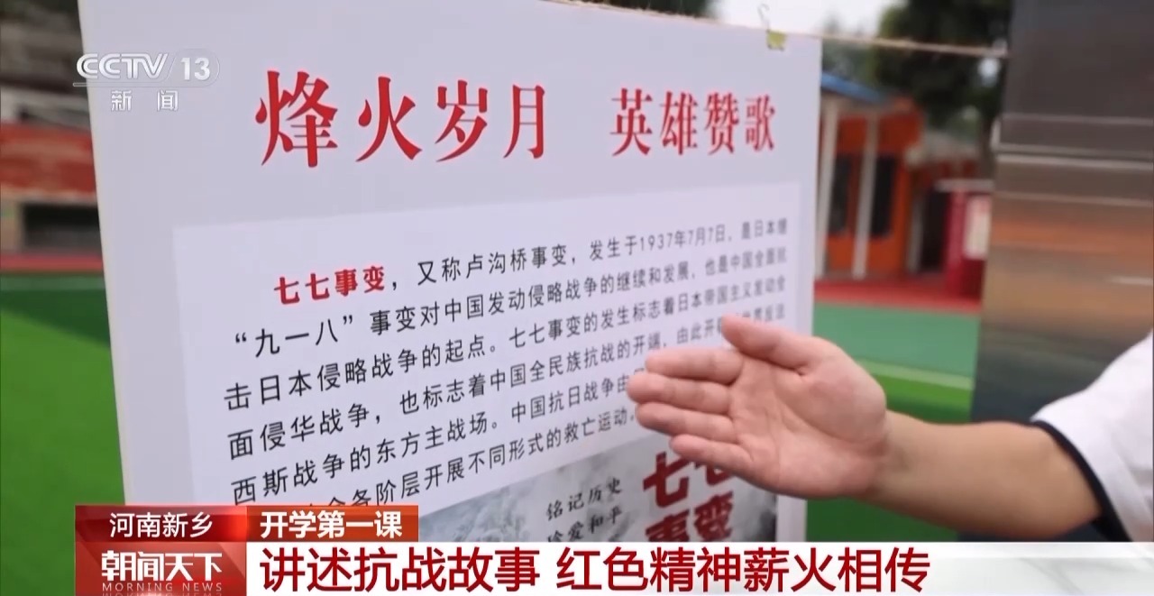 今年是中国人民抗日战争暨世界反法西斯战争胜利80周年。新学年开启,各地中小学结合“开学第一课”,广泛开展爱国主义教育,让学生了解抗战历史、学习红色文化、感悟民族精神。