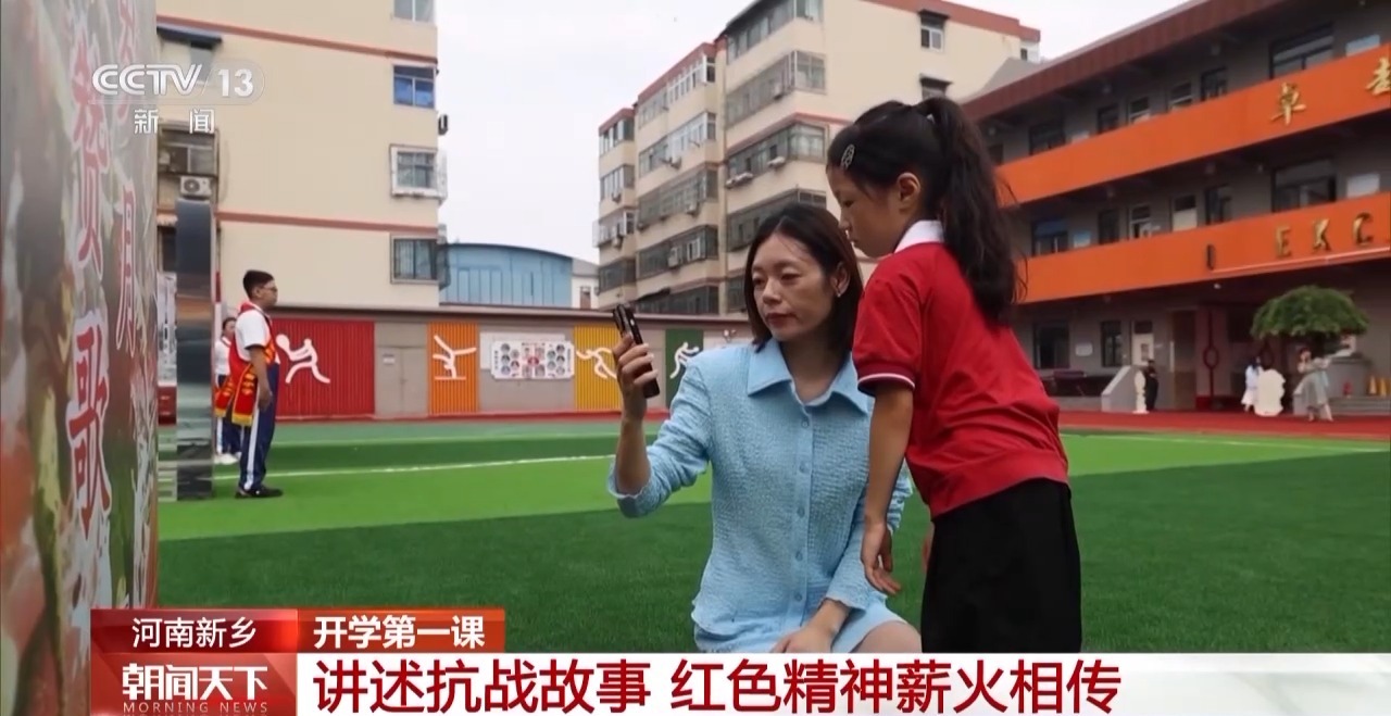 在河南新乡,红旗区实验小学把爱国主义教育与开学典礼相结合,为孩子们带来了难忘的开学第一课。学校举办了抗战主题展览,以“山河破碎”“烽火岁月”“胜利之光”“薪火相传”四个篇章展现抗战历程,还配有专属二维码,家长扫码即可和孩子一起收听革命故事音频、观看英雄人物短视频。“小小讲解员”们则声情并茂地为一年级新生讲述抗战故事。