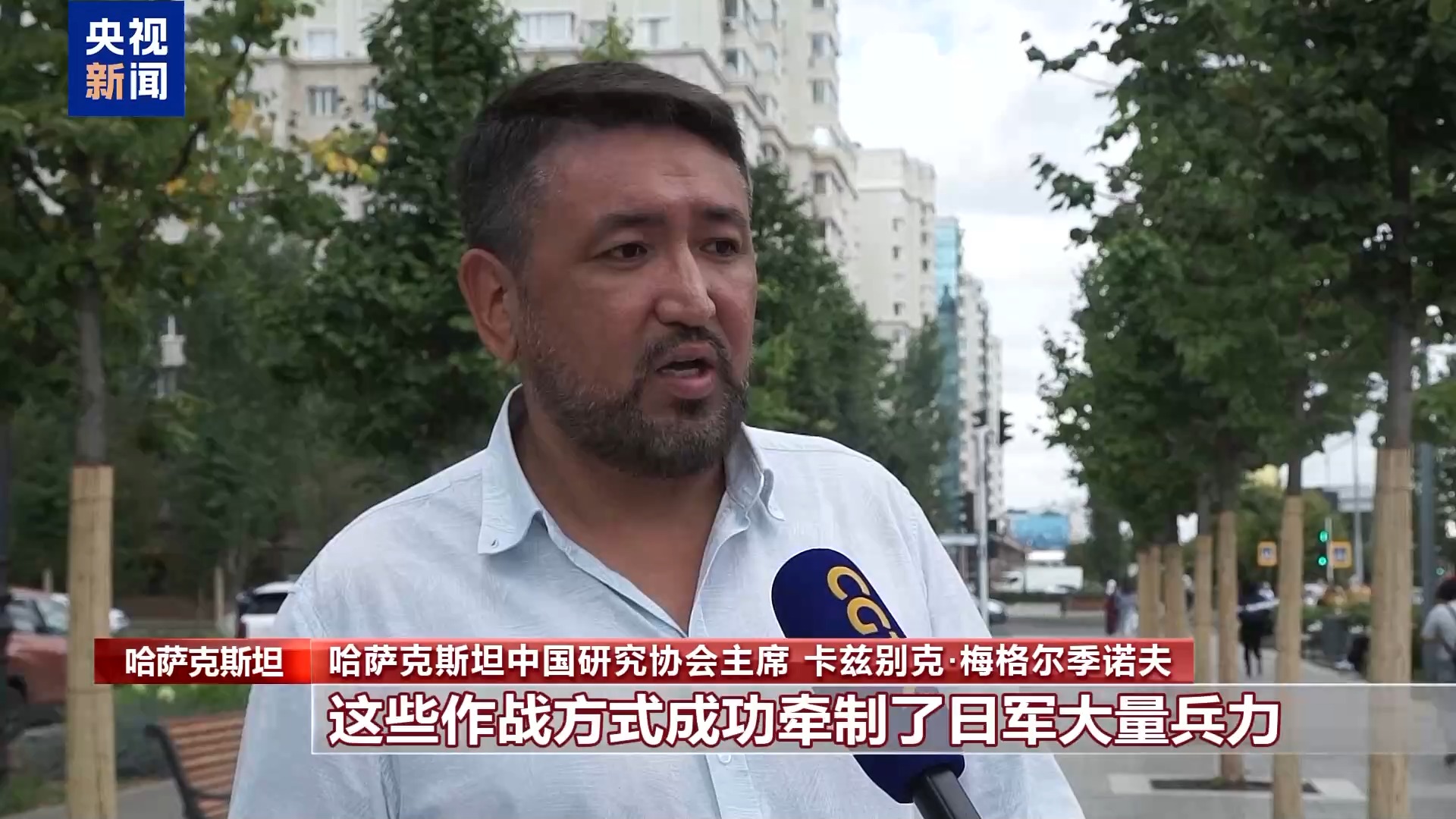 哈萨克斯坦中国研究协会主席 卡兹别克·梅格尔季诺夫:中国人民早于其他盟军在本土展开了艰苦卓绝的战斗,中国对二战胜利的战略贡献至关重要。中国在战争初期就清醒认识到抵御日本侵略的重要性,开展了游击战、防御战和持久战,这些作战方式成功牵制了日军大量兵力。日本至今仍未承认在中国犯下的罪行,正因如此,我们必须清醒认识到,任何历史悲剧都应被正视,中国在二战中的贡献更应得到充分承认。