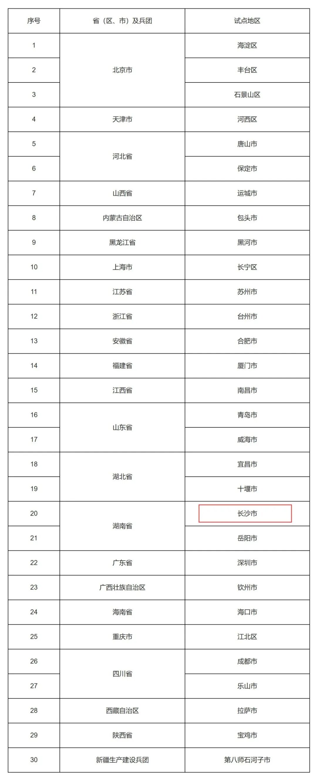 为全面推动城市一刻钟便民生活圈建设,着力惠民生、促消费,根据《商务部等11部门办公厅(室)关于推广全国第二批城市一刻钟便民生活圈试点经验及开展第二批全域推进先行区试点申报工作的通知》要求,在各地申报的基础上,经专家评审并向社会公示,商务部等部门确定了第二批城市一刻钟便民生活圈全域推进先行区试点地区30个,包括北京市海淀区、丰台区、石景山区,天津市河西区,内蒙古自治区包头市,上海市长宁区,安徽省合肥市,江苏省苏州市,湖南省长沙市、岳阳市等。