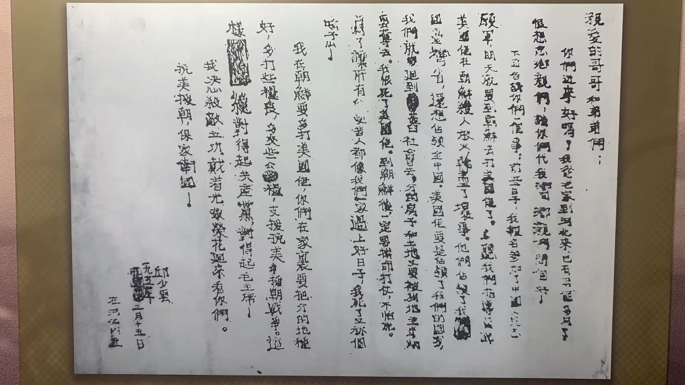 这是邱少云写给家里的信(沈阳抗美援朝烈士陵园供图)。