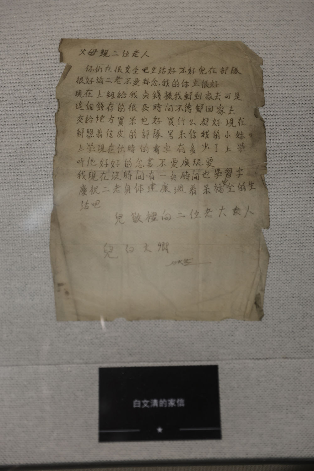 这是沈阳抗美援朝烈士陵园纪念馆内展出的志愿军战士白文清的家书(2025年9月10日摄)。 新华社记者 潘昱龙 摄