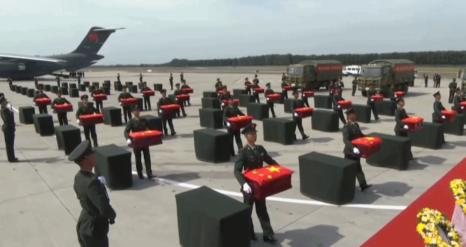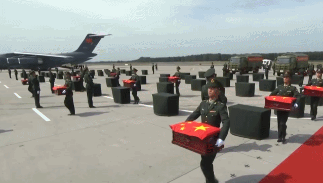 异国埋忠骨,山河盼英魂。70多年前,中国人民志愿军先烈抛洒热血、以身许国,谱写了雄壮史诗,铸就了不朽丰碑。各位先烈,祖国不会忘记你们,人民不会忘记你们,历史不会忘记你们。今天,我们承载着祖国和人民的期盼,承载着亲人与战友的思念,接迎英雄回家。向英雄致敬!