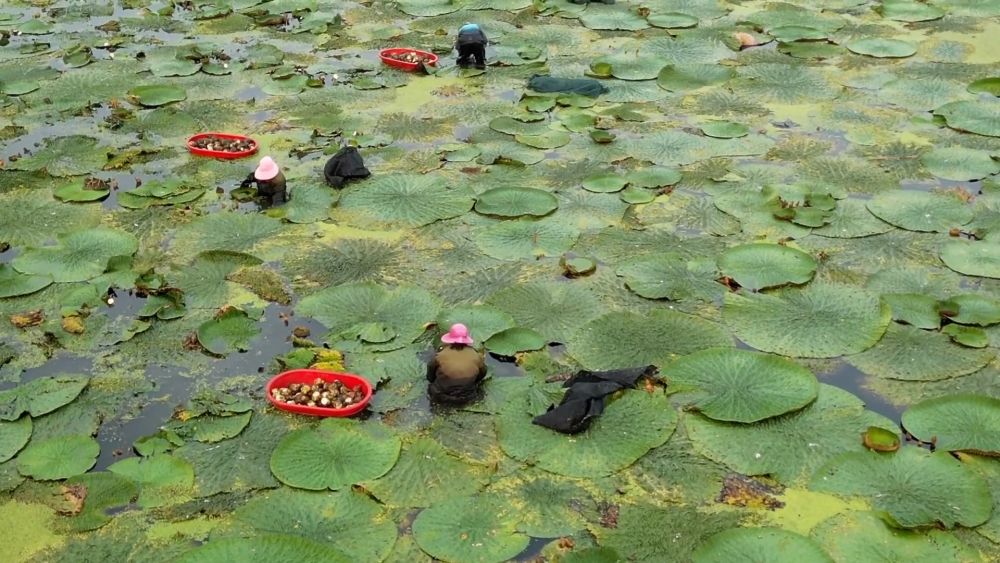 眼下,江苏省泰州市姜堰区顾高镇申俞村芡实进入成熟期,种植户正抓紧采摘成熟的头茬芡实。