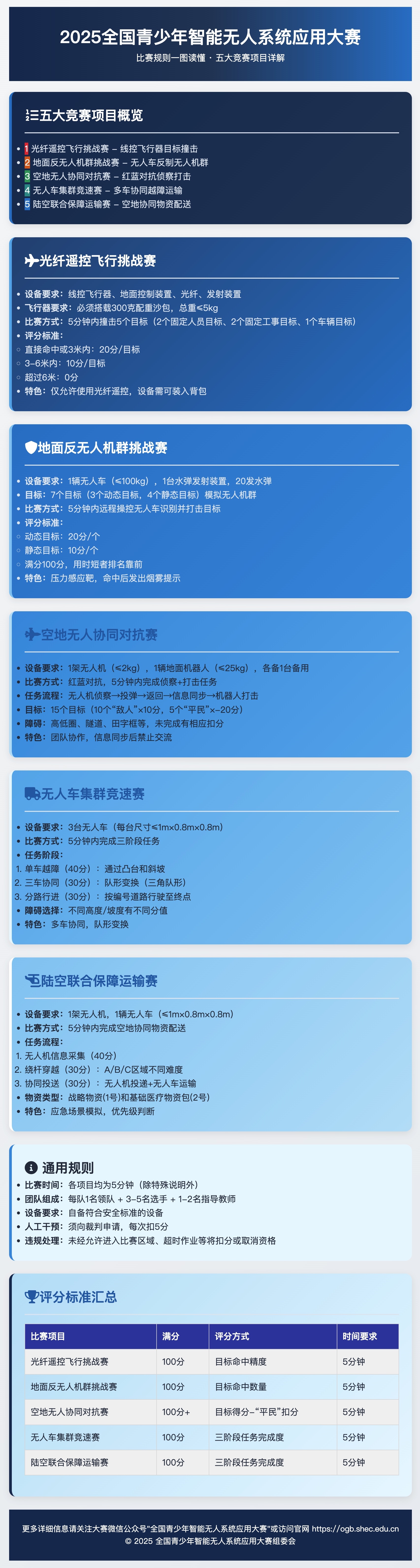 > 一图读懂“2025全国青少年智能无人系统应用大赛”比赛规则