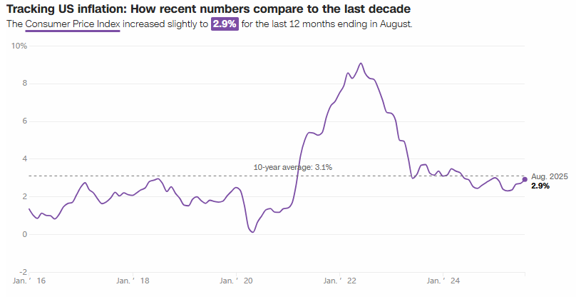 美国劳工统计局最新数据显示,2025年8月消费者价格指数(CPI)环比上涨0.4%,年通胀率攀升至2.9%,不仅创下今年1月以来的最高水平,而且增速超过7月的2.7%。