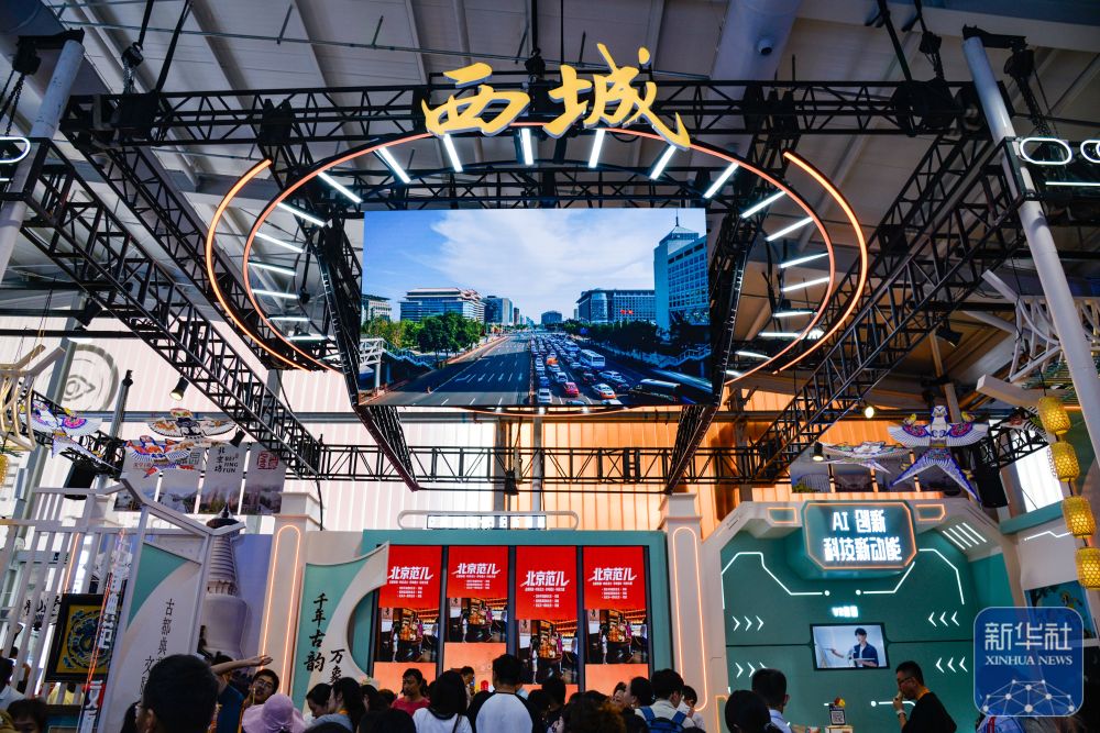 ↑ 9月13日,在北京首钢园拍摄的2025年服贸会文旅服务展馆西城区展台。