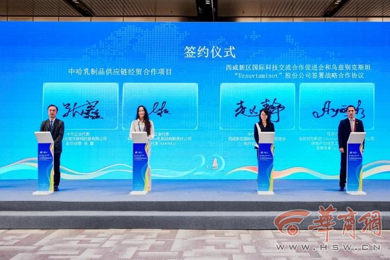会议见证了中哈乳制品供应链经贸合作项目以及西咸新区国际科技交流合作促进会与乌兹别克斯坦“Uzsuvtaminot”股份公司战略合作协议签约,并为欧亚青年服务团(乌兹别克斯坦站青年服务站)揭牌。据了解,该平台将作为青年互联互通的重要支点,进一步促进欧亚青年在数字时代的协同创新与文化互鉴。