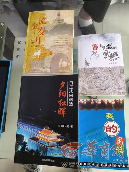 田玉成的写作不局限于网络,他还将自己的文章汇集成书。如今,他已经出版了六本书,其中包括《我的闲话》、《善与恶的震撼》、《田玉成网帖选:夕阳红晖》、《流金岁月》等,大多是他在报刊和网络上发表的作品的合集。其中,《流金岁月》引发关注,这本散文集内容涵盖陕西关中白鹿原地区的民俗风情、故乡往事、社会变迁、个人从业经历以及杂谈随想等,堪称一部白鹿原地区的“人文笔记”。