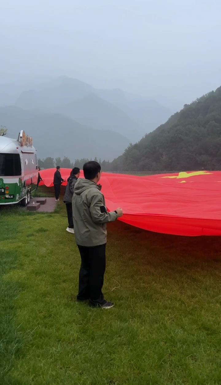 该景区相关负责人告诉极目新闻记者,定制这面国旗花了1万元左右,长50米、宽33米,9月28日进行了首次托举试验,76名景区员工花了30分钟做完整个“托举”和“收拢”流程,预计需要100人左右的游客共同托举,效果最好。