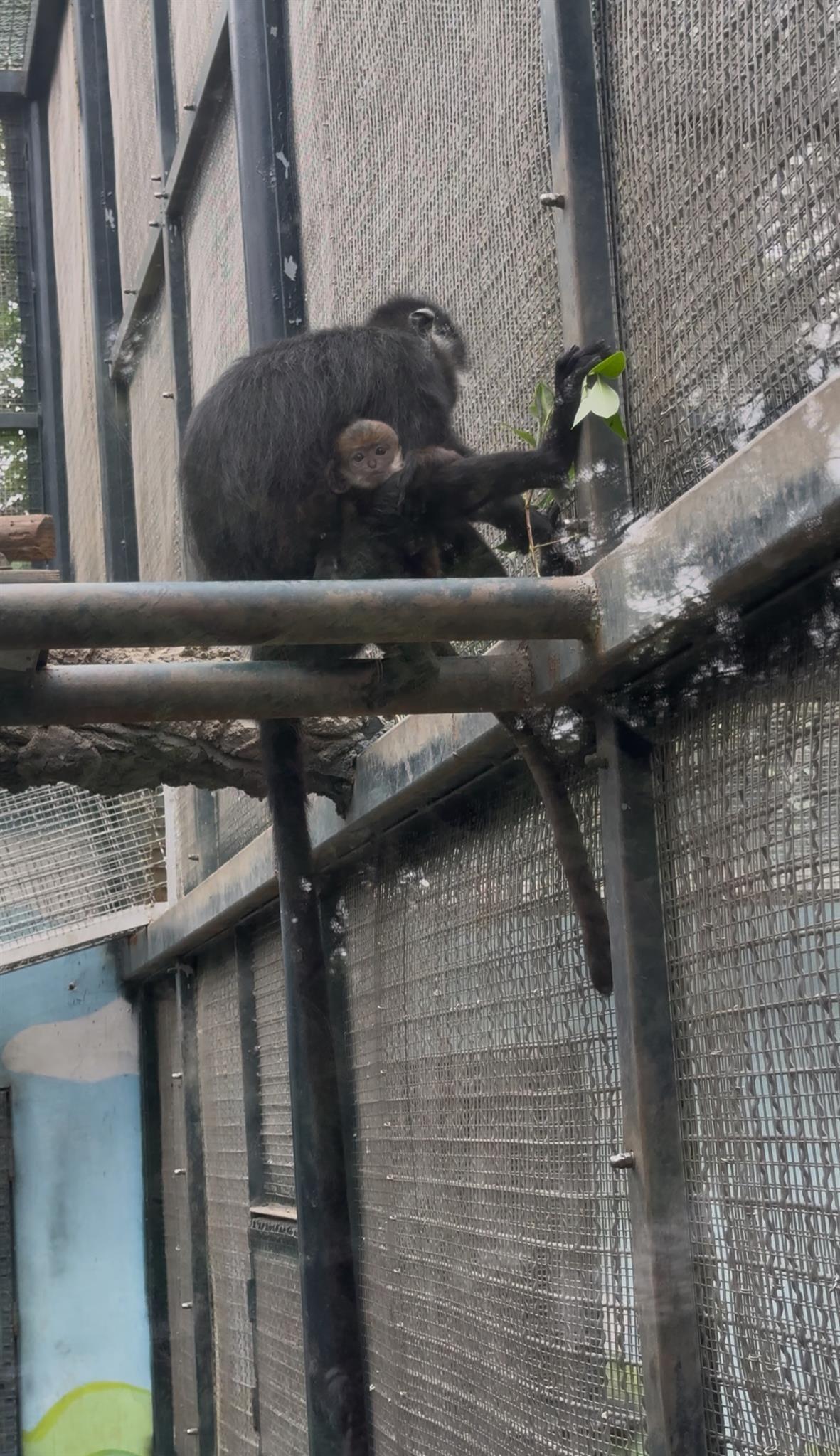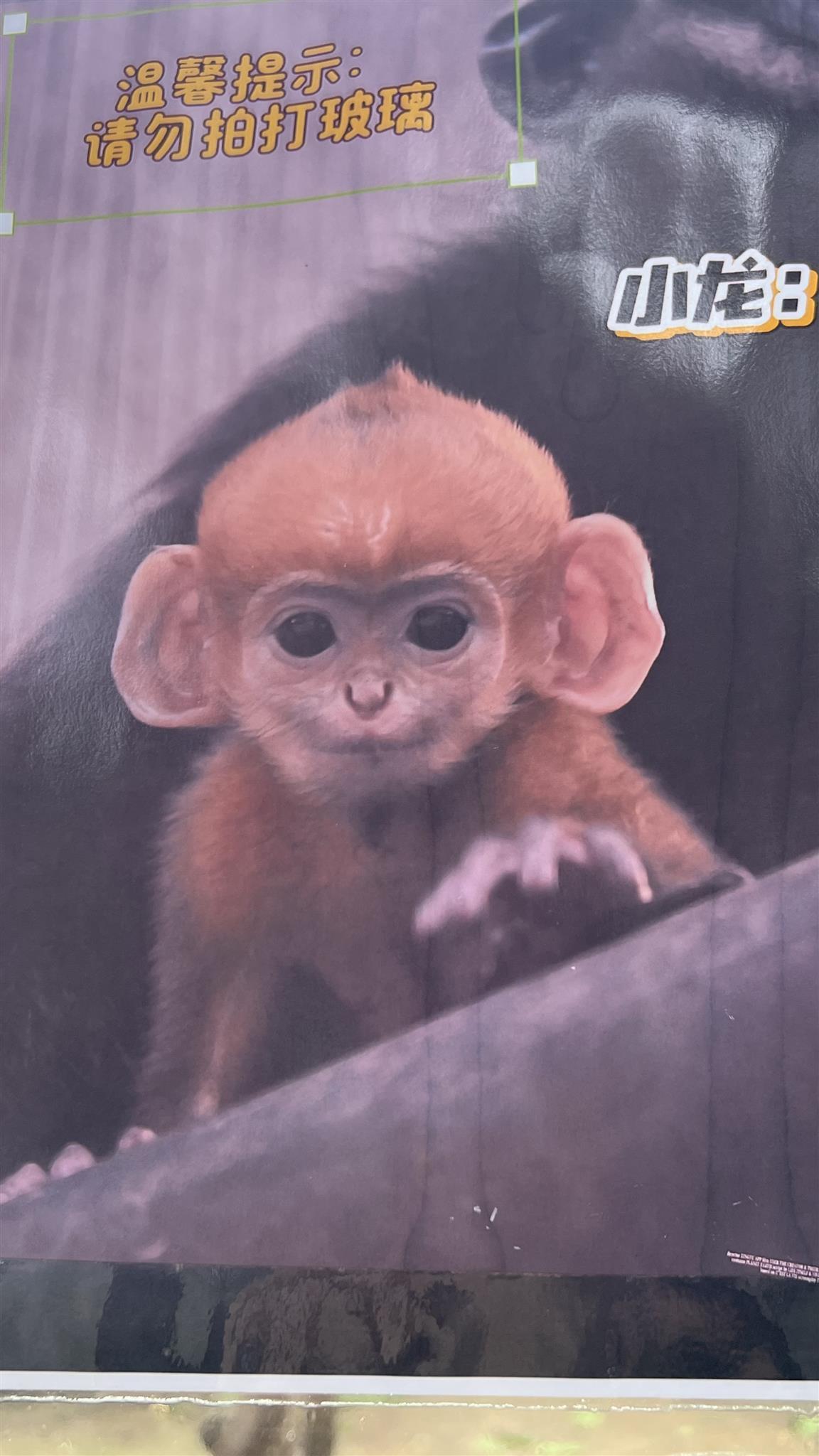 “小龙”出生于6月30日,是一只雄性黑叶猴。它圆圆的大眼睛、金黄色的茂密毛发、攀爬跳跃的身手,赢得众多游客喜爱,许多人说,它长着一张漫画脸。