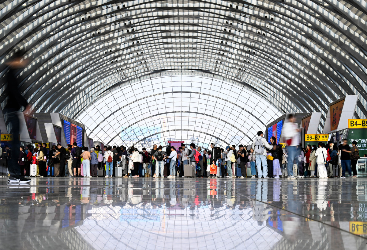 Passengers are pictured at the waiting hall of Tianjin West Railway Station in Tianjin, Oct 7, 2025. [Photo/Xinhua]