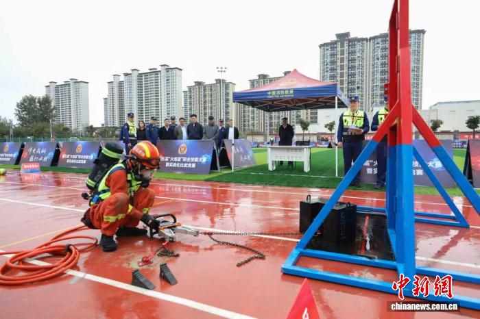 10月11日,陕西省消防救援队伍第五届“火焰蓝”职业技能大赛暨实战化比武竞赛开幕式在陕西杨凌举行。据悉,此次竞赛汇聚了来自全省的12支代表队,共有732名消防指战员参与其中。他们将围绕全能工匠(指挥员)、楼层攻坚、理论竞赛、极速突破、建筑火灾等8个考核科目,展开激烈的角逐。图为消防指战员开展技能竞赛。 陕西消防供图