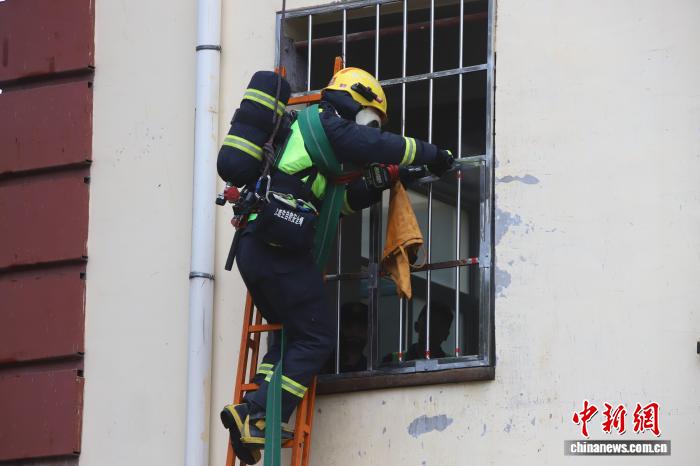 图为消防指战员进行科目考核。 陕西消防供图