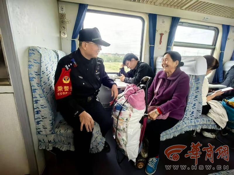 今年七月,因工作需要,西安东站派出所承担部分列车值乘安保任务。听到消息后的范栓柱积极报名,“老乘警队长”出身的他值乘起西安开往汉中的K8205次列车,又一次回到了熟悉的阵地。K8205次列车是既有线上的“慢火车”,沿线停靠的站点多,穿行于关中西部及秦巴山区,是沿途群众出门的首选,被亲切的称为“家门口的公交车”。值乘完第一趟列车后,范栓柱基本掌握了该次列车主要以观光旅客和山区群众为主,于是他确定了“预防宣传+爱民服务”的趟车勤务模式。车上的范栓柱忙的不亦乐乎,向旅游打卡的乘客开展安全防范宣传,有时还会推荐沿途风景观光点。主动将手机号码提供给那些时常乘车往返卖菜、就医的当地老乡,力所能及的帮助解决实际困难。车上碰到独自坐车上学的中小学学生时,范栓柱再忙也会一一打招呼,细心地叮嘱注意人身安全或者不要坐过站点。