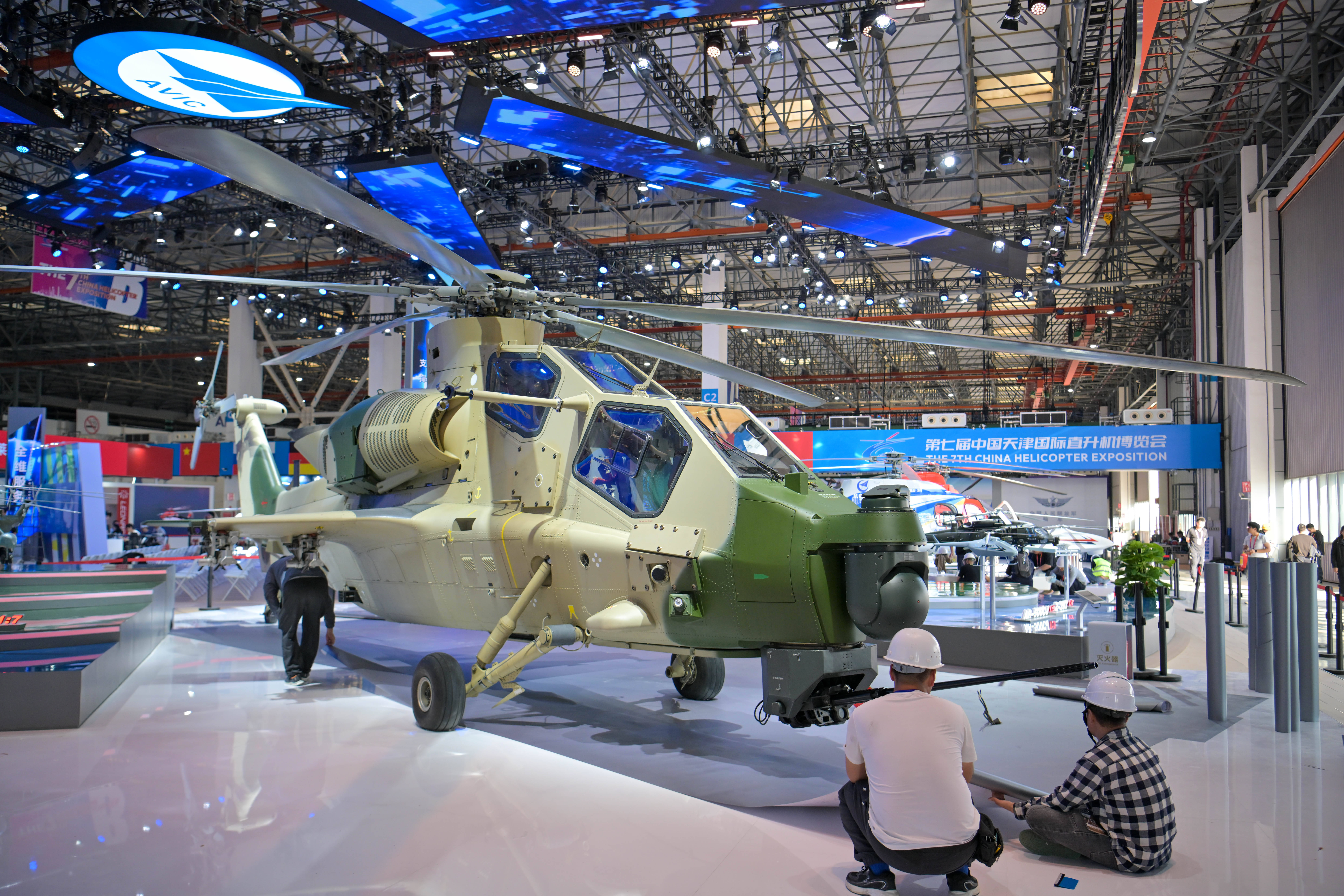 10月14日在天津直博会直升机馆内拍摄的直升机模型。 新华社记者 孙凡越 摄