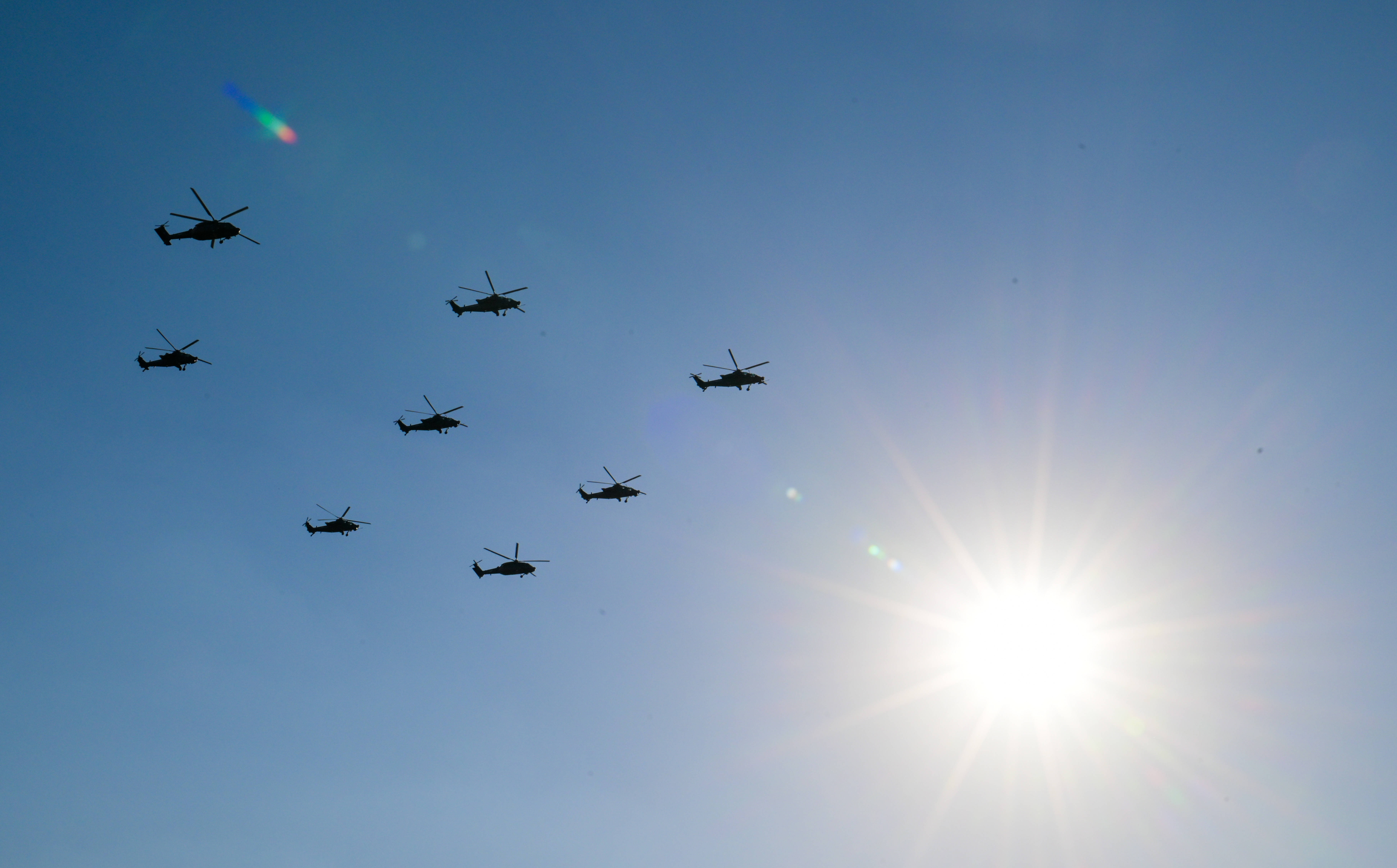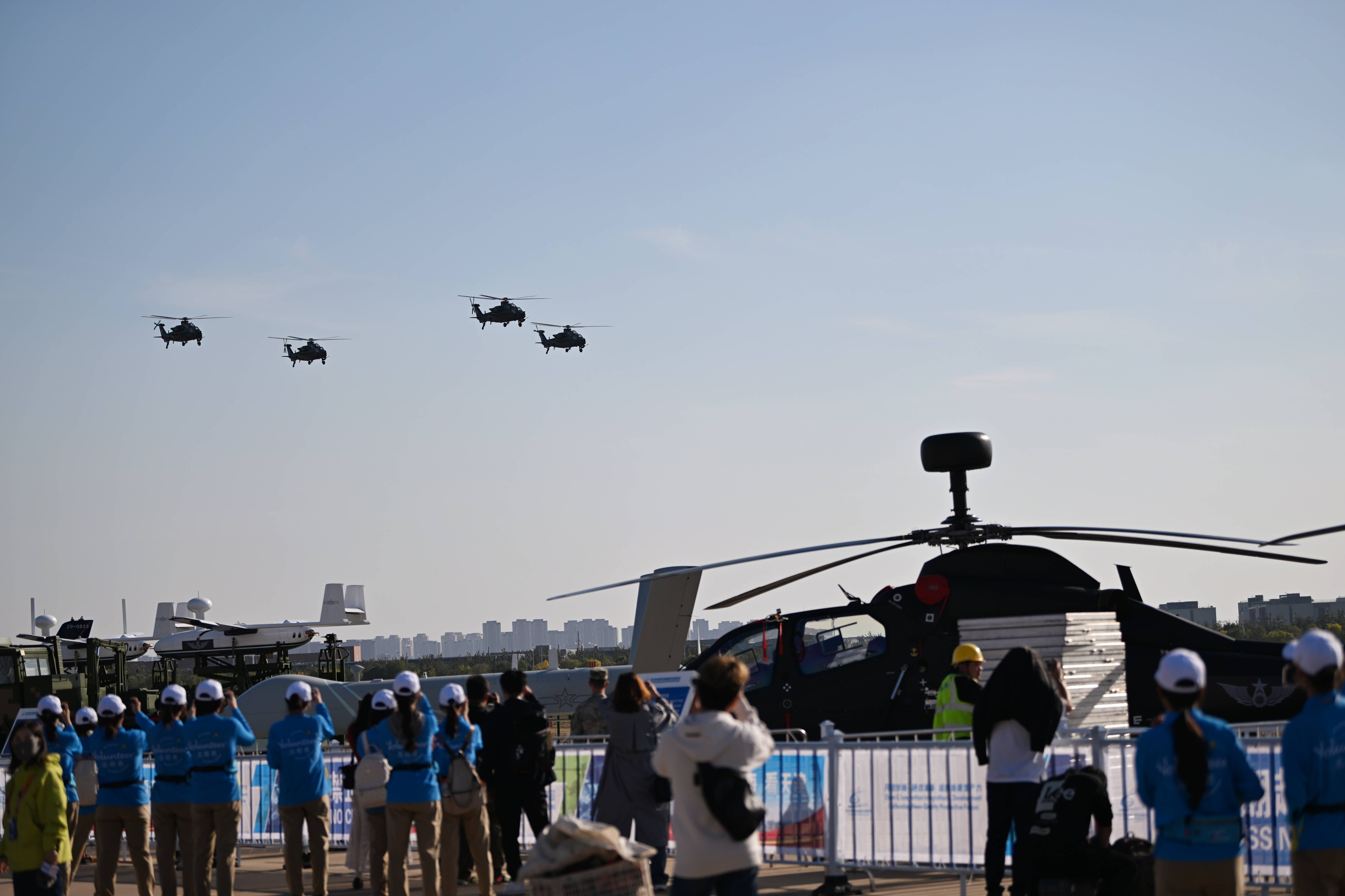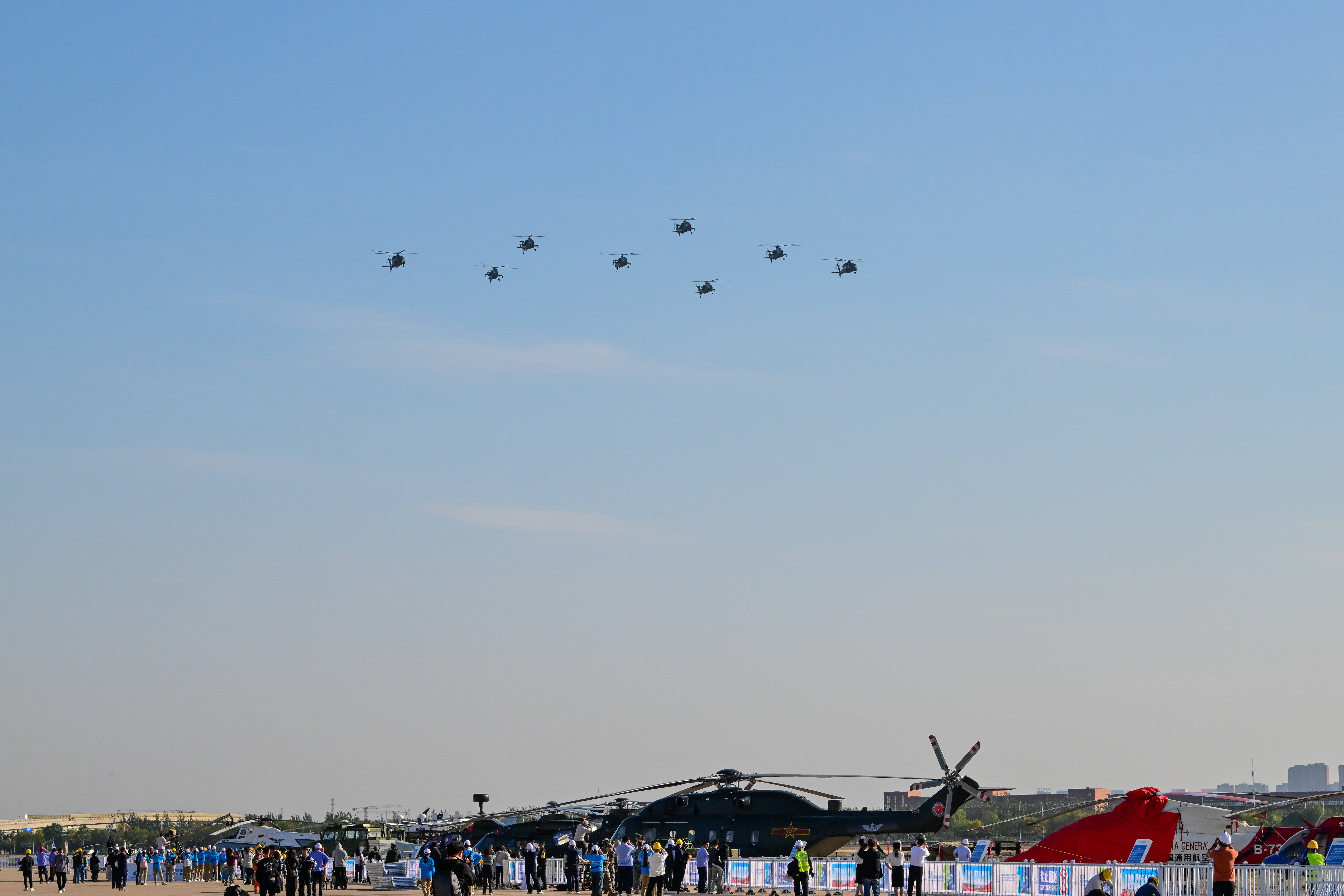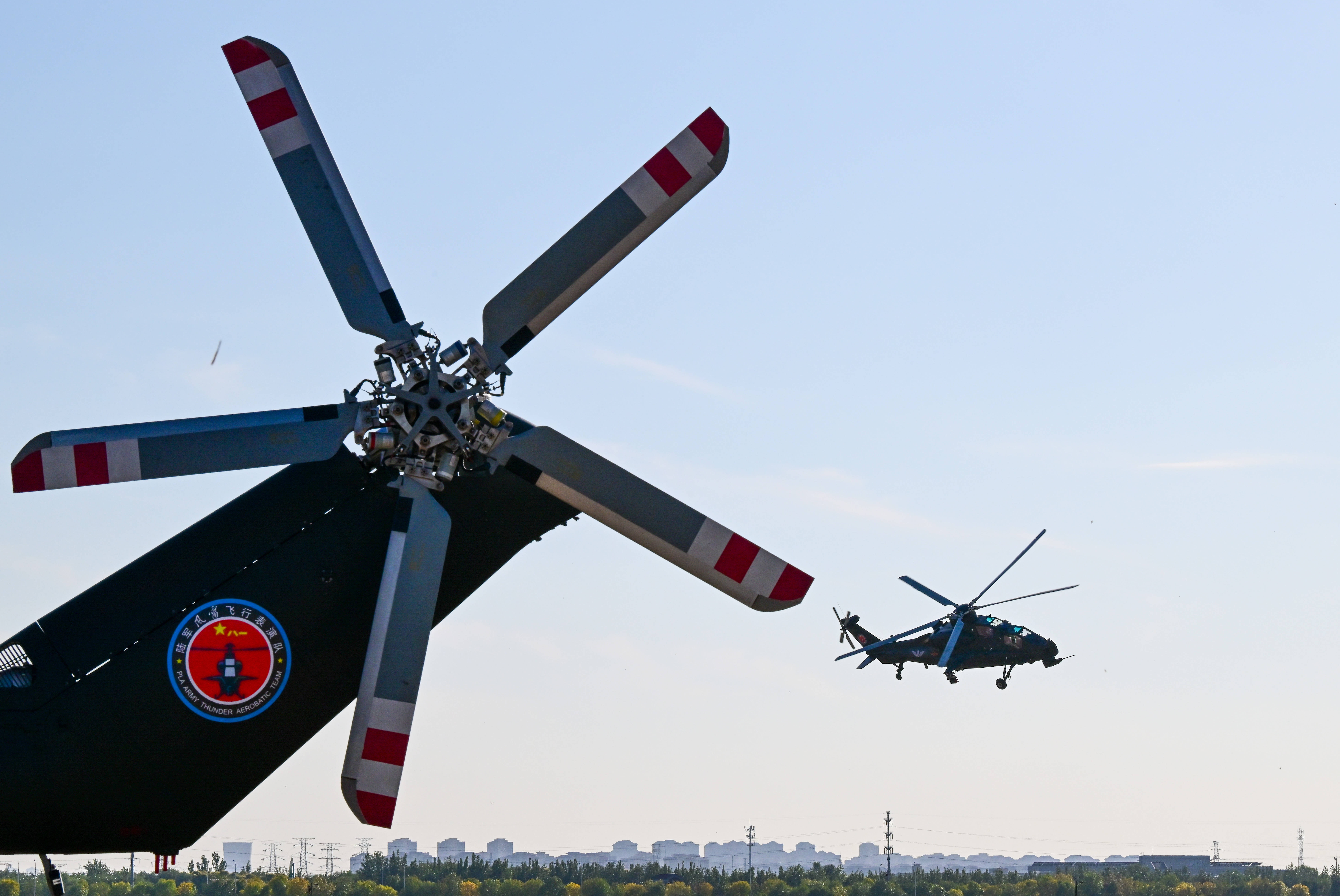 10月14日,参加飞行表演的直升机进行演练。 新华社记者 孙凡越 摄