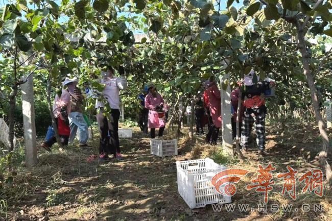 秋阳斜照,渭水畔的果园里,猕猴桃缀满藤架,沉甸甸地压弯了枝梢。农人指尖轻旋,毛茸茸的褐果便落入掌心,竹筐里渐次堆起小山,山风中漾开清甜微酸的香气。