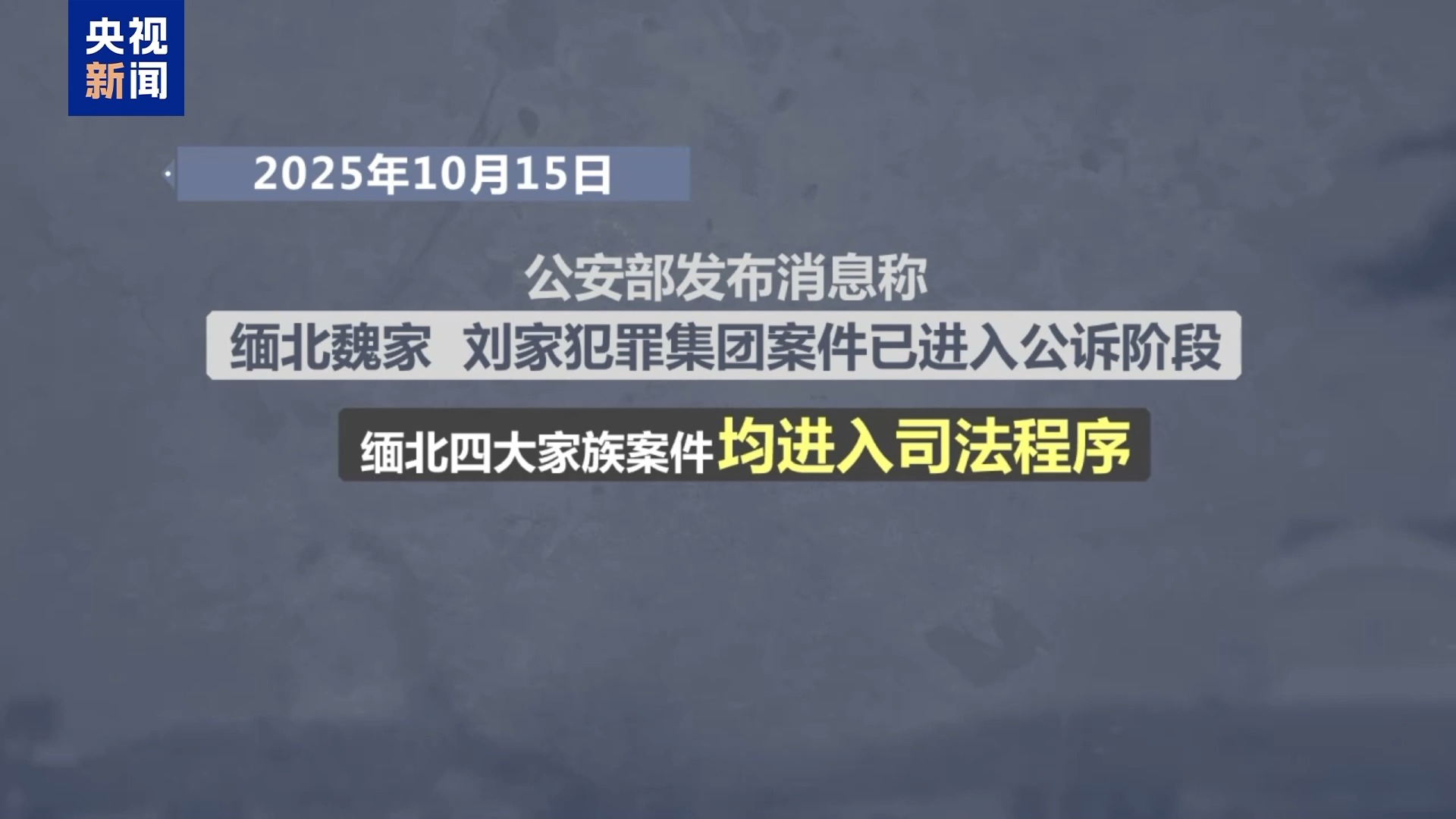 2025年10月15日,公安部发布消息称,缅北魏家、刘家犯罪集团案件也已进入公诉阶段,至此,缅北四大家族案件均进入司法程序。