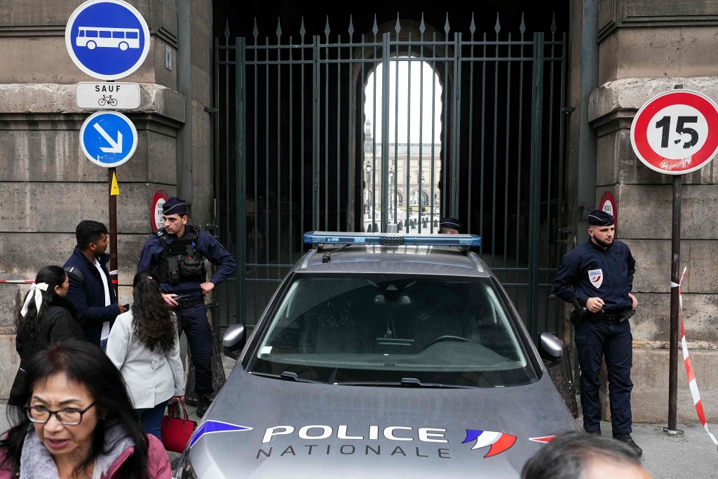 当地时间2025年10月19日,在法国巴黎,警察聚集在卢浮宫博物馆外。新华社 图