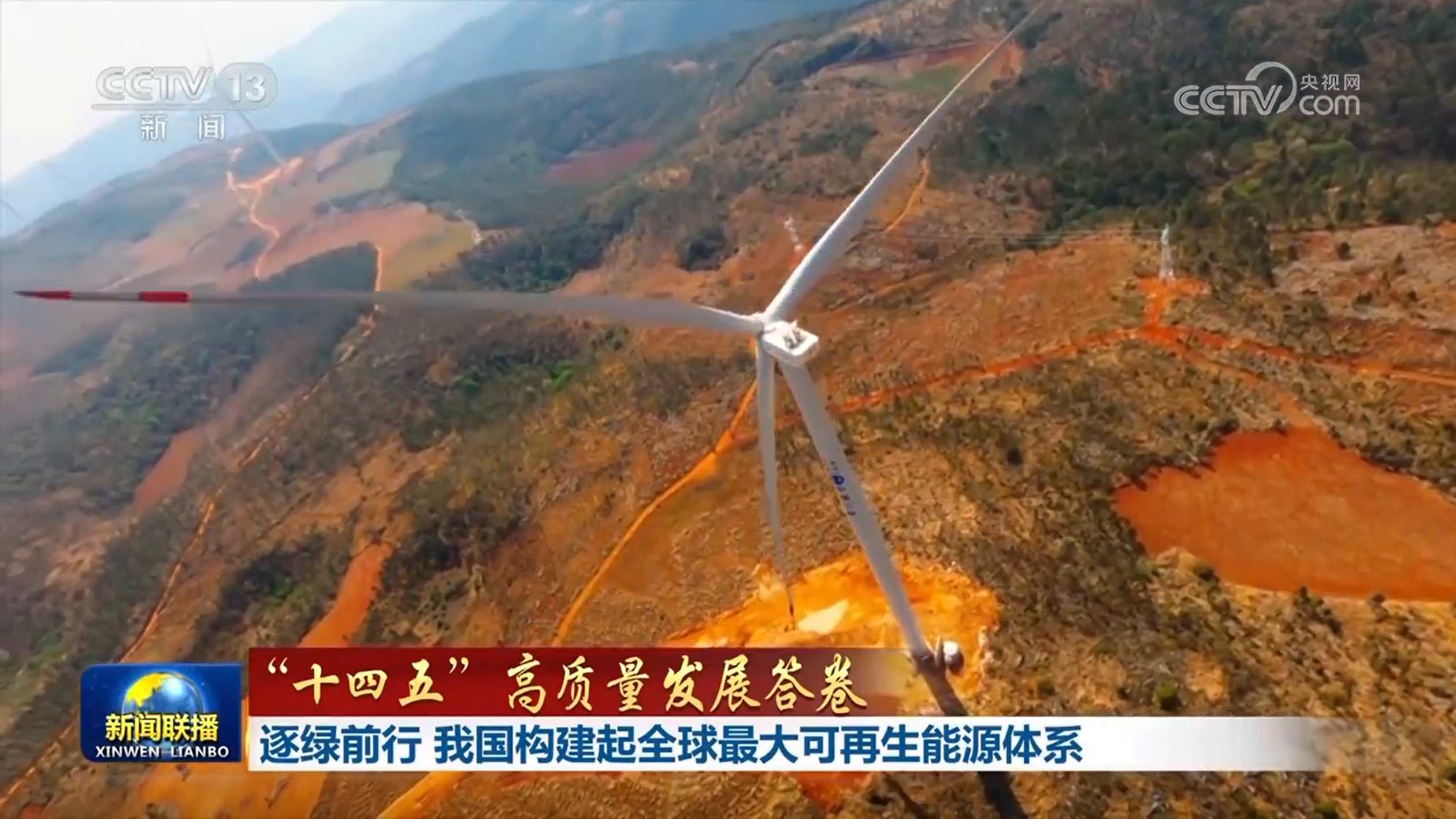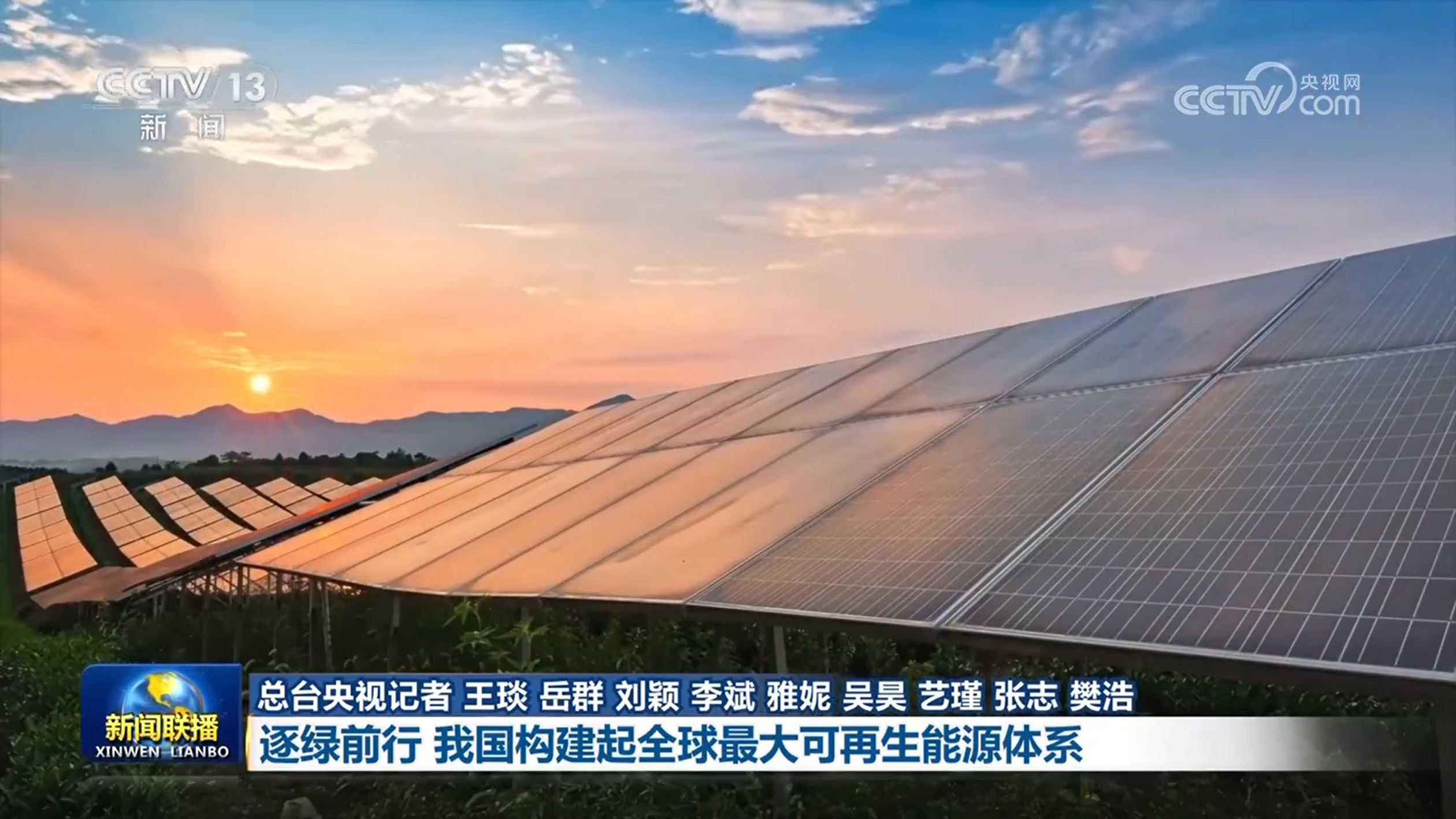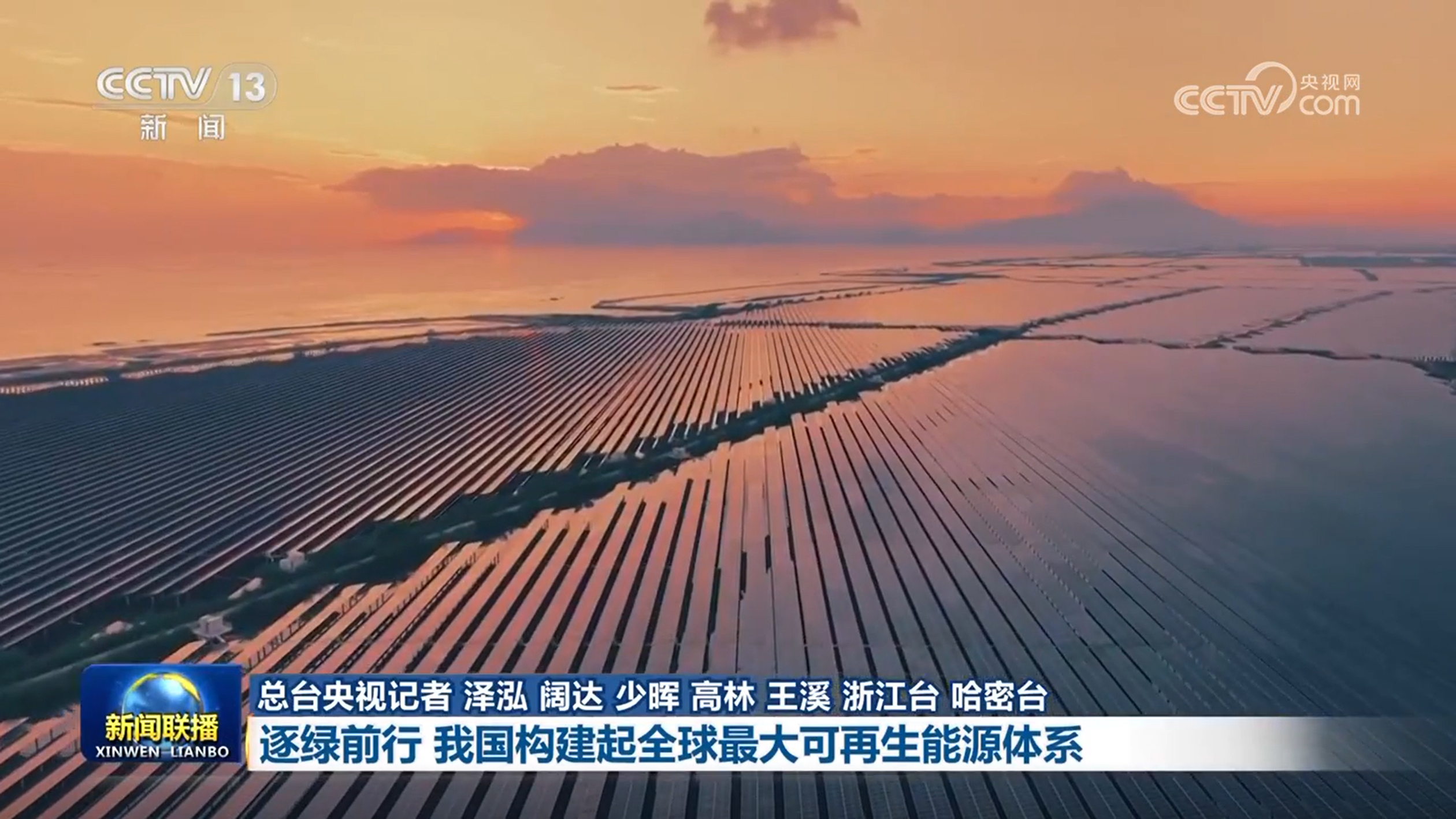 静音(m)全屏(f)ADCountdown Time | 广告关闭广告 尊贵的用户,已为您跳过广告 您上次观看至-:-处,已为您续播 正在加载 视频播放器。播放(p)播放视频播放(p)当前时间 0:00/时长 2:23媒体流类型 直播 高清画质超清高清, 选择标清流畅静音(m)全屏(f)加载完成: 20.96%-88:88core:undefined undefinedwrap:3.5.1 25.08.01画中画央视网消息(新闻联播):荒无人烟的沙漠、戈壁与荒滩变身巨大的发电场,横跨千里,清洁能源毫秒之间东西“闪送”。“十四五”以来,中国逐“绿”而行,在广袤山河间铺展能源绿色变革的壮阔图景,神州大地上能源生产与消费格局正在改写。这是沙海日出的一瞬间,2.7万面定日镜被同步唤醒,这里每年的发电量相当于替代56万吨燃煤。高原起风的瞬间,93米长的叶片加速转动,每转一圈发出的电足够三口之家用上2天。今天的中国,一年发电超10万亿千瓦时,占全球1/3。全社会用电中,每3度就有1度来自风吹日晒水流的馈赠。这是全球规模最大、影响最深远的绿色奇迹。长江干流上,六座大型水电站拦江而立,串联成世界最大的清洁能源走廊。“沙戈荒”新能源基地里,昔日寸草难生的土地变身蓝色光伏的海洋。“十四五”规划布局的九大清洁能源基地,有七个都在西部地区。如果把五年间全国新增的光伏板铺展开,总面积可以覆盖53万座足球场;把新增的风机叶片依次连接,长度相当于从中国最东端到最西端走一个来回。“十四五”规划中的特高压“能源动脉”也在冲破地理屏障,加速生长。五年间,19条特高压开工建设,织成了一张电力输送的超级网络。如今,从西到东跨区域输送清洁能源电量增长了70%,来自西部的绿电支撑了东中部地区五分之一的用电需求。新型储能第一次出现在“五年规划”中。靠重力储能、靠压缩空气,今年夏天,这些“巨型充电宝”大规模参与“迎峰度夏”战役,成为电网应对“尖峰时刻”的“定海神针”。今天,我国已建成了全球最大、最完整的新能源产业链,非化石能源消费占比20%的“十四五”目标如期完成。 来源:央视网 相关热词搜索: