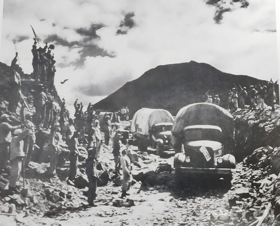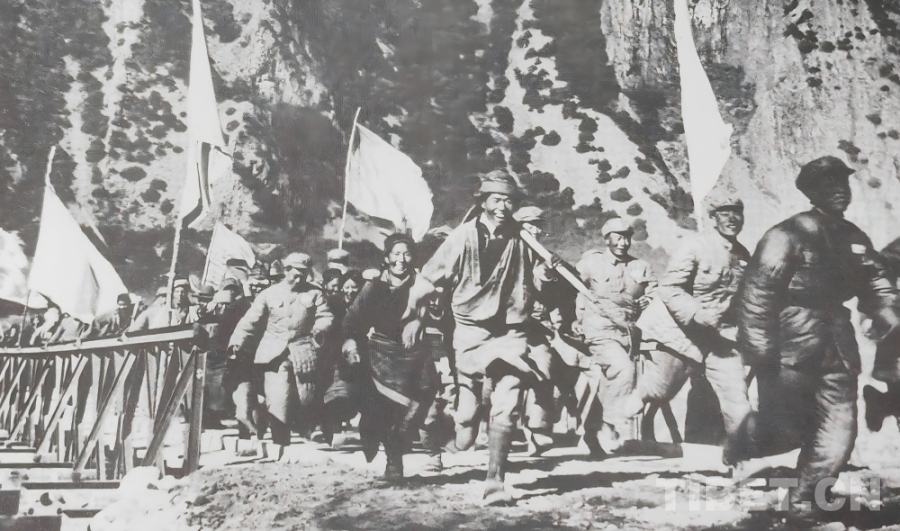1951年10月,人民解放军正式进驻拉萨,随着各项工作稳步推进,局势趋于稳定。西藏工委、西藏军区同西藏地方政府协商加快修建康藏公路的问题,于1952年在拉萨成立第一工程局(后改为第一施工局),1953年1月筑路委员会成立,下设西线筑路指挥部。进藏部队、地方干部与各族民工(西线筑路大军)从拉萨出发,先打通拉萨河南岸至墨竹工卡的山路,再顶着米拉山口的暴风雪铺筑路基,一点点将公路向着巴河的方向延伸。两支筑路大军隔着雪山峡谷,却以同样的坚韧,在高原上刻下属于中国人的英勇无畏!
