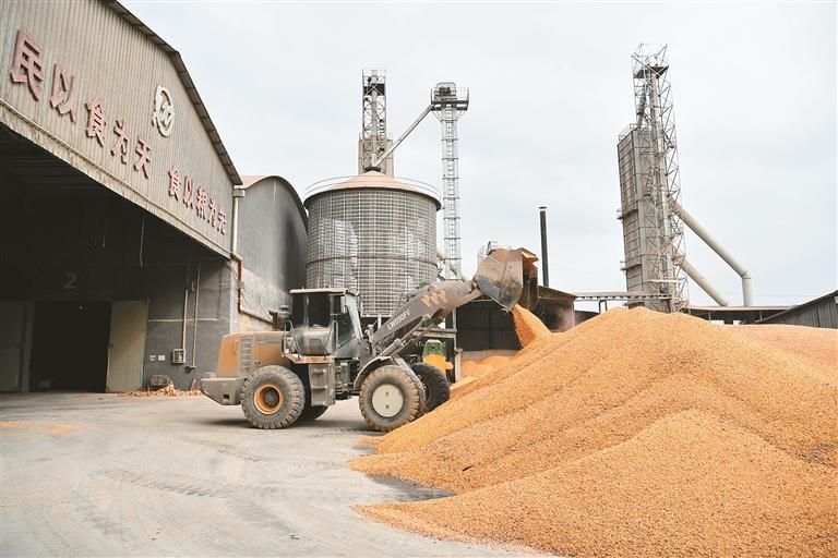 大图:这是陕西省三原县大程镇等桥村秋粮收购烘干服务点内准备进行烘干的玉米。