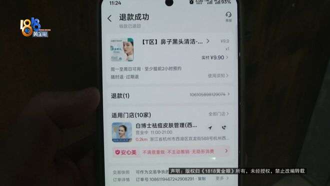 小周介绍,他今年大学毕业后,在杭州做程序员,6月份刷短视频的时候看到了一则九块九清洁黑头的广告,6月24号,他来到白博士面部皮肤管理中心西溪银泰店。