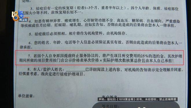 小周:钱有点付不起,然后我开始就是查一些维权方案,我要退的是那个收缩毛孔“蓝铜胜肽”剩下的五次,还有就是7020元那个升级卡,因为升级卡我一次没有做过,然后想跟他们协商退款,他们就是拿之前让我签的那个知情同意书,上面说要付25%的违约金。