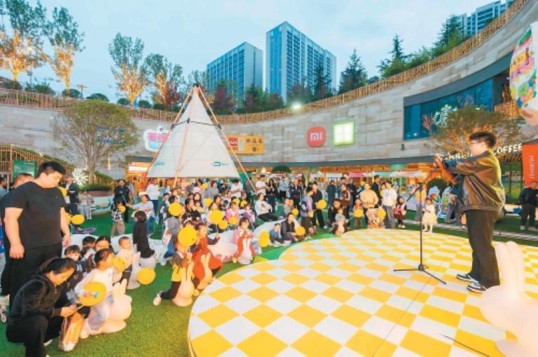地上郁郁葱葱的绿色廊道间,足球场、篮球场、羽毛球场和10个体育健身广场满足了市民的健身锻炼需求;地下空间内,集餐饮、购物、娱乐为一体的商业中心红火热闹,由图书馆、文化馆、非遗中心组成的文化广场则成为孩子们学习休闲的乐园,乘坐着“幸福号”小火车穿梭其中,别有一番乐趣。