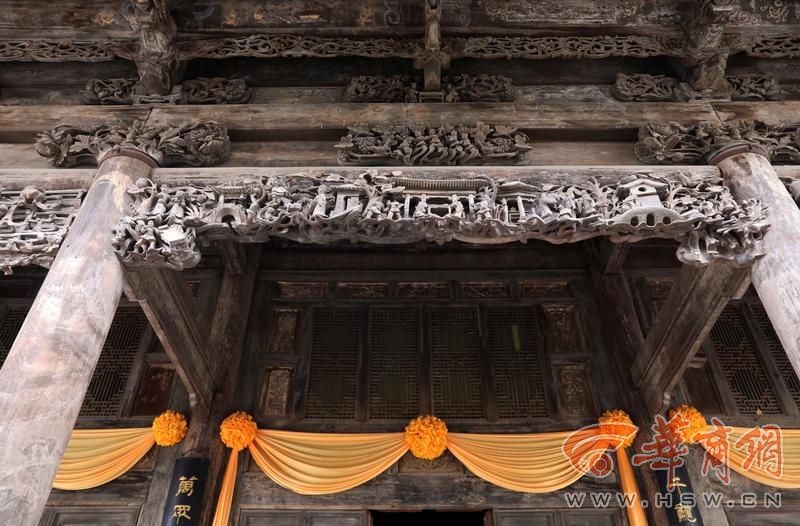 进门左转就是有名的“品”字形戏台,三座戏台面向献殿、财神殿和圣母殿,这也是后土祠独有的建筑奇观,戏台木雕格外精致,台檐下的雀替雕刻着“八仙过海”“龙凤呈祥”等图案,连木柱上的对联都透着古意:“声遏行云一曲笙歌皆入妙,舞回明月千秋乐府尽成春”。导游说过去盛会时,三座戏台同时上演同一剧目的陕西秦腔、山西晋剧和河南豫剧,给诸神“观看”,也供观众品评,看,那一台戏的观众多、那一台戏唱得好,这就是“对台戏”的由来吧。此时虽无演出,却能想象出逢年过节时,戏台上锣鼓喧天、台下人声鼎沸的热闹场景,看来庄严的祖祠里也藏着鲜活的人间烟火。